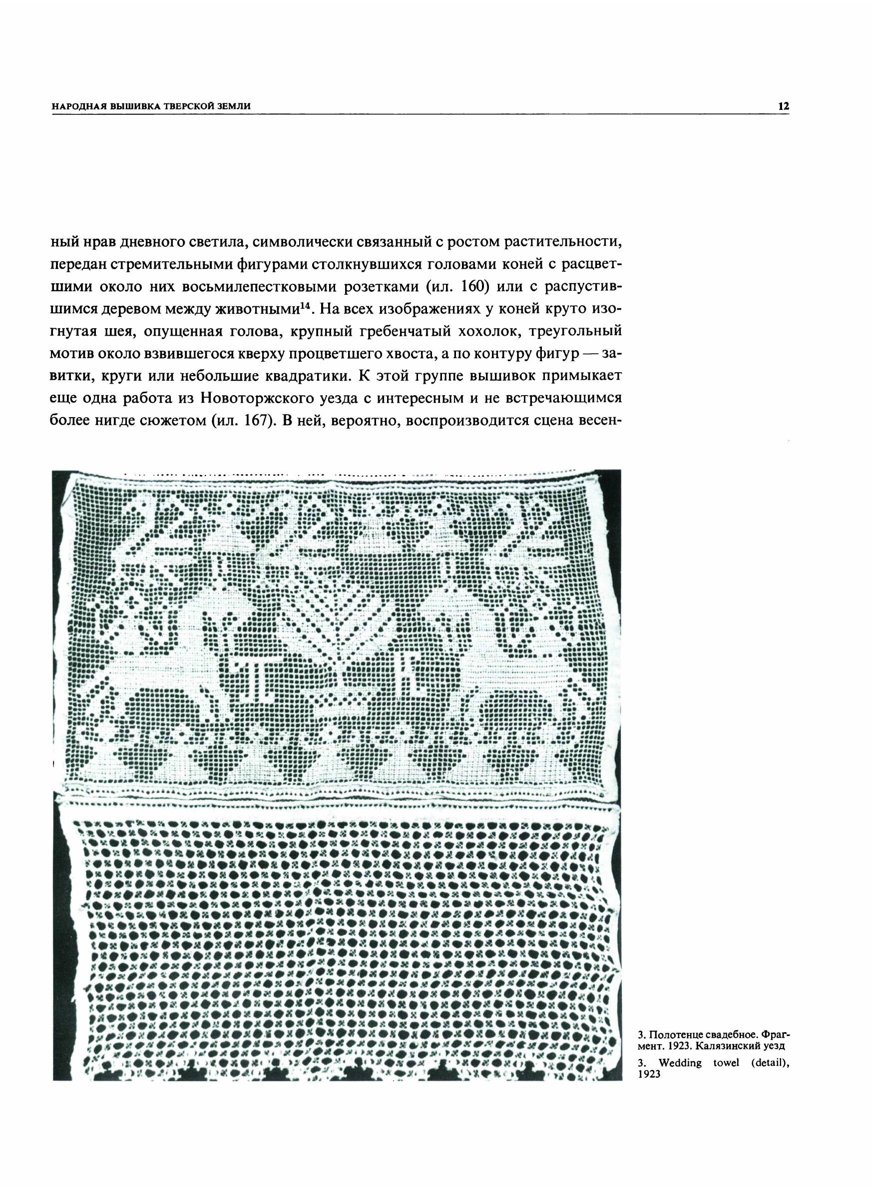 Народная вышивка Тверской земли отличается многообразием технических приемов, красотой композиционного строя, праздничными композиционными решениями. Во вступительной статье автор рассматривает значение древних орнаментальных сюжетов, в символической форме закрепивших содержание, истоки которого восходят к седой славянской древности. В небольших очерках характеризуются особенности народных вышивок ряда районов Тверского края. В приложении к альбому раскрываются технические приемы вышивок и применение их в быту. Альбом содержит около 176 цветных и тоновых иллюстраций.