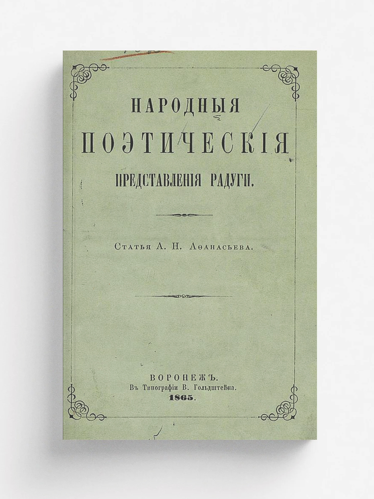 Афанасьев, Александр Николаевич (1826–1871). Народные поэтические представления радуги: Ст. А. Н. Афанасьева. — Воронеж: тип. В. Гольдштейна, 1865. — [2], 14 с.; 23.