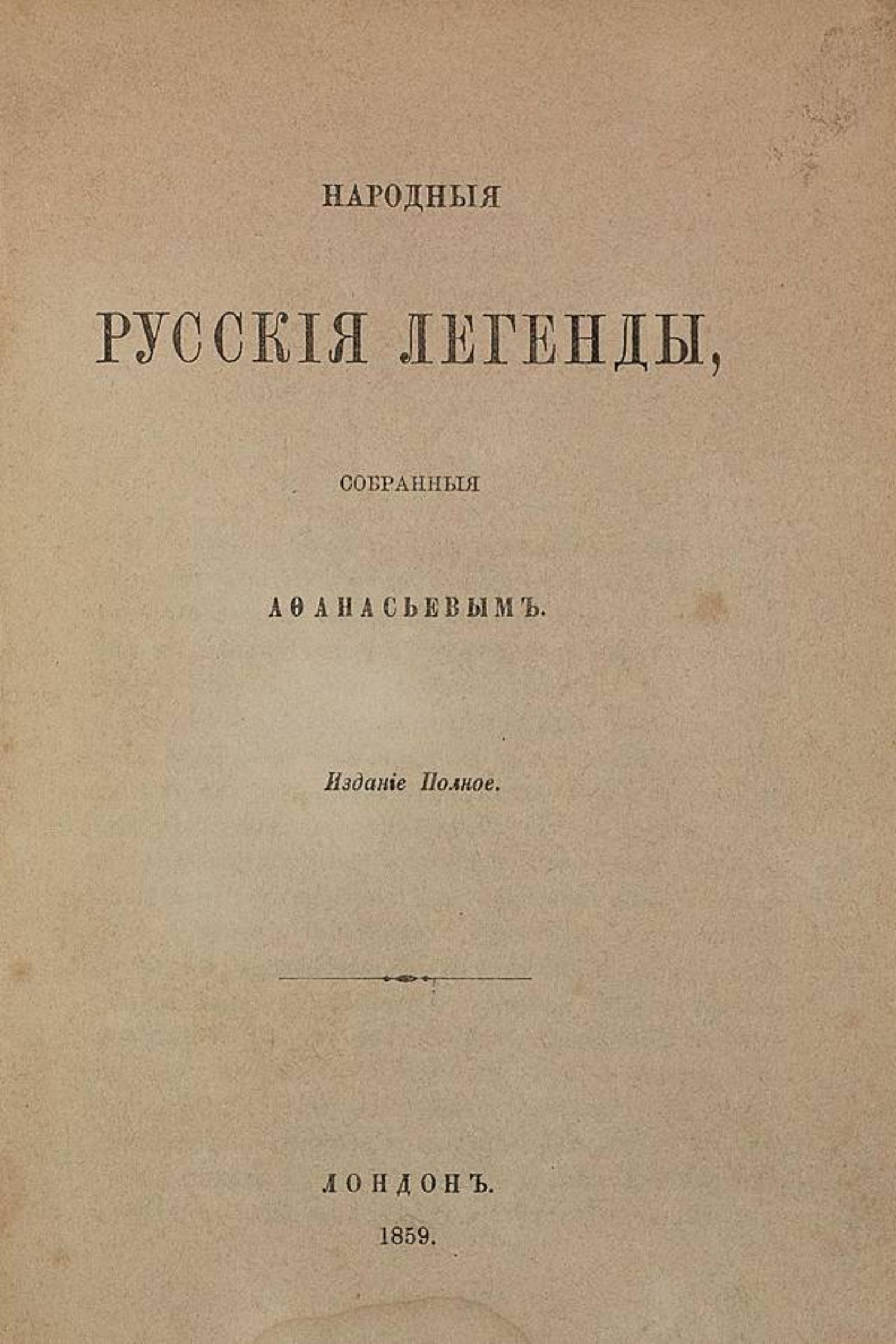 Народные русские легенды, собранные Афанасьевым. — Изд. полное. Лондон, 1859 [Берлин: Изд. кн. маг. Штура, 1895]. — XXXII, 204, II с. ; 20 см.