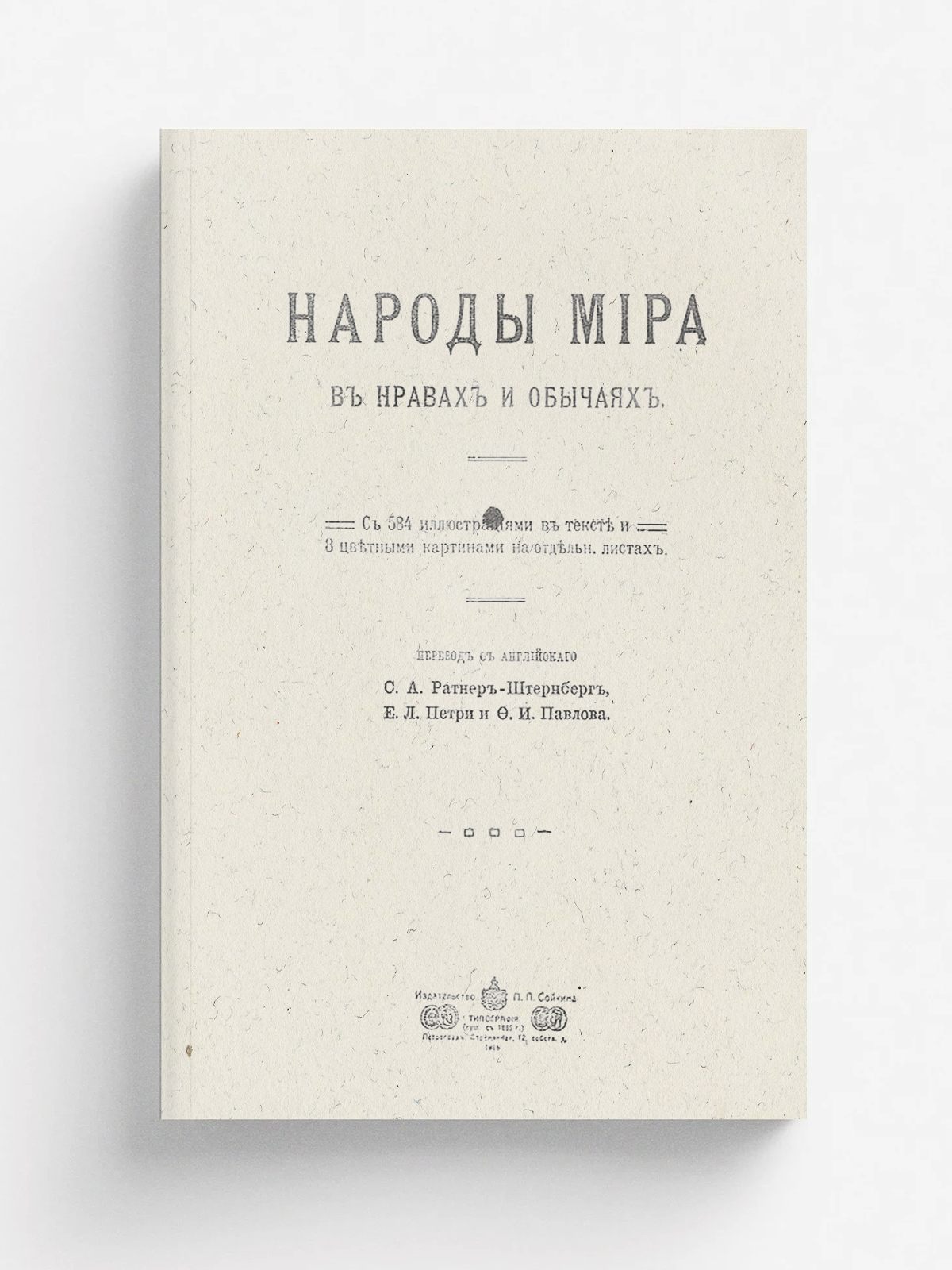 Народы мира в нравах и обычаях / Пер. с англ. С. А. Ратнер-Штернберг, Е. Л. Петри и Ф. И. Павлова. — Петроград: П. П. Сойкин, 1916. — [4], 640 с., 8 л. ил. : ил.; 28.