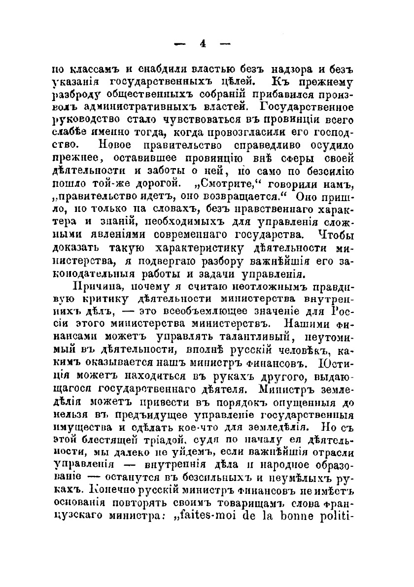 Издание содержит критические замечания к деятельности Министерства внутренних дел в Управлении земскими губерниями России 2-й половины 19 века.