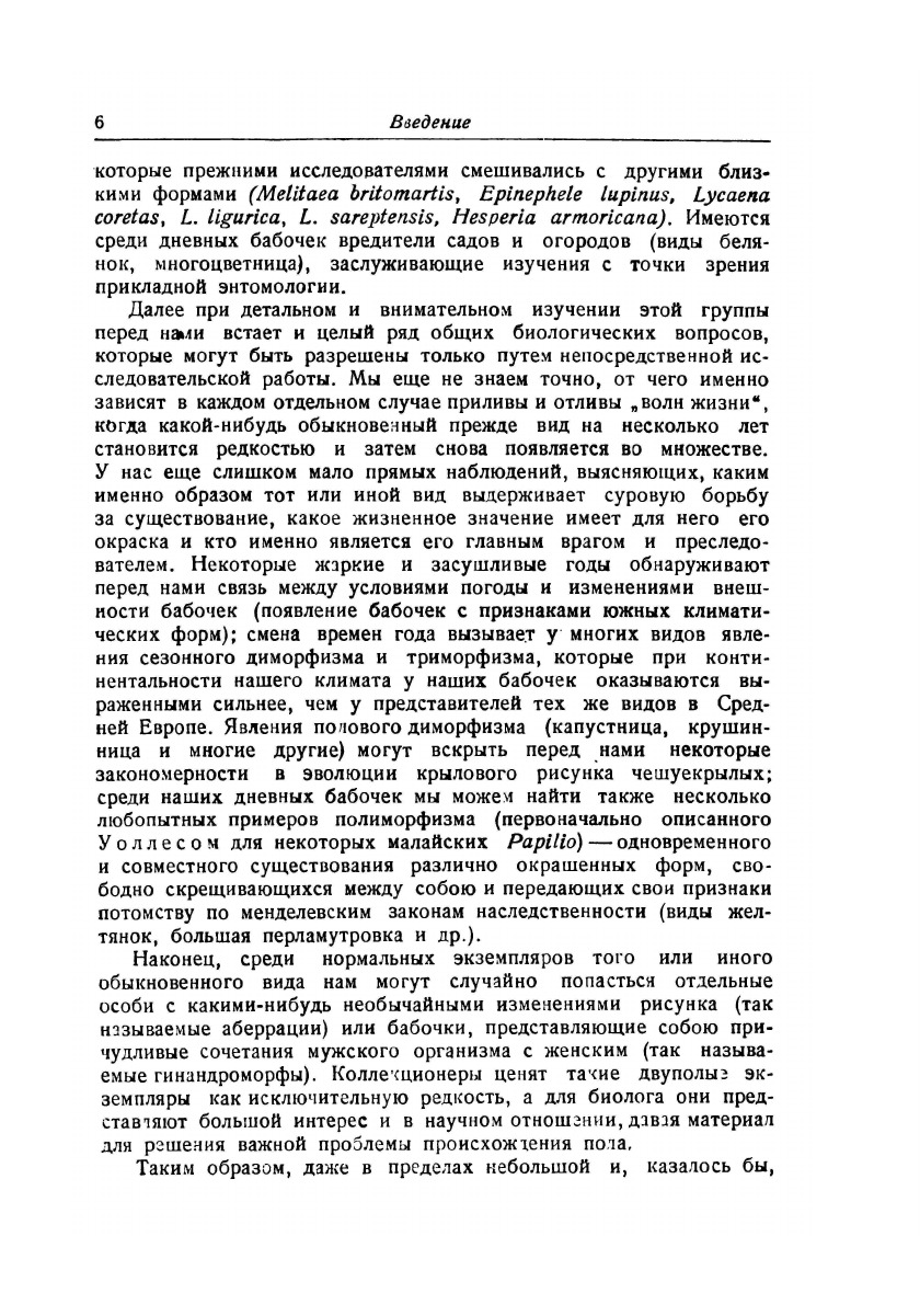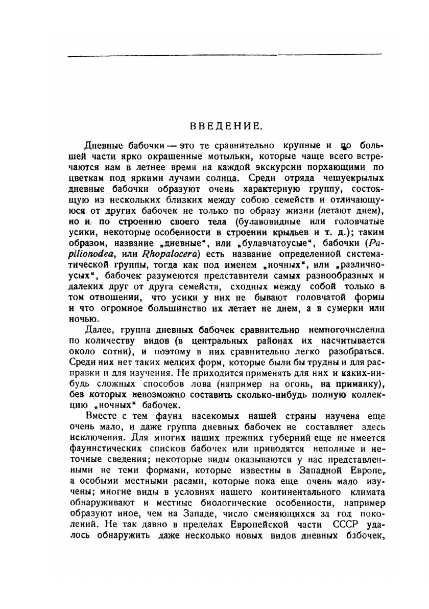 Общее число известных до сих пор видов дневных бабочек по всем зоогеографическим областям превышает 22 ООО. В пределах Палеарктическсй области насчитывается около 720 видов, и из них на территории Европейской части СССР (без горной части Кавказского края) отмечено 209 видов, которые и описаны в предлагаемом определителе.