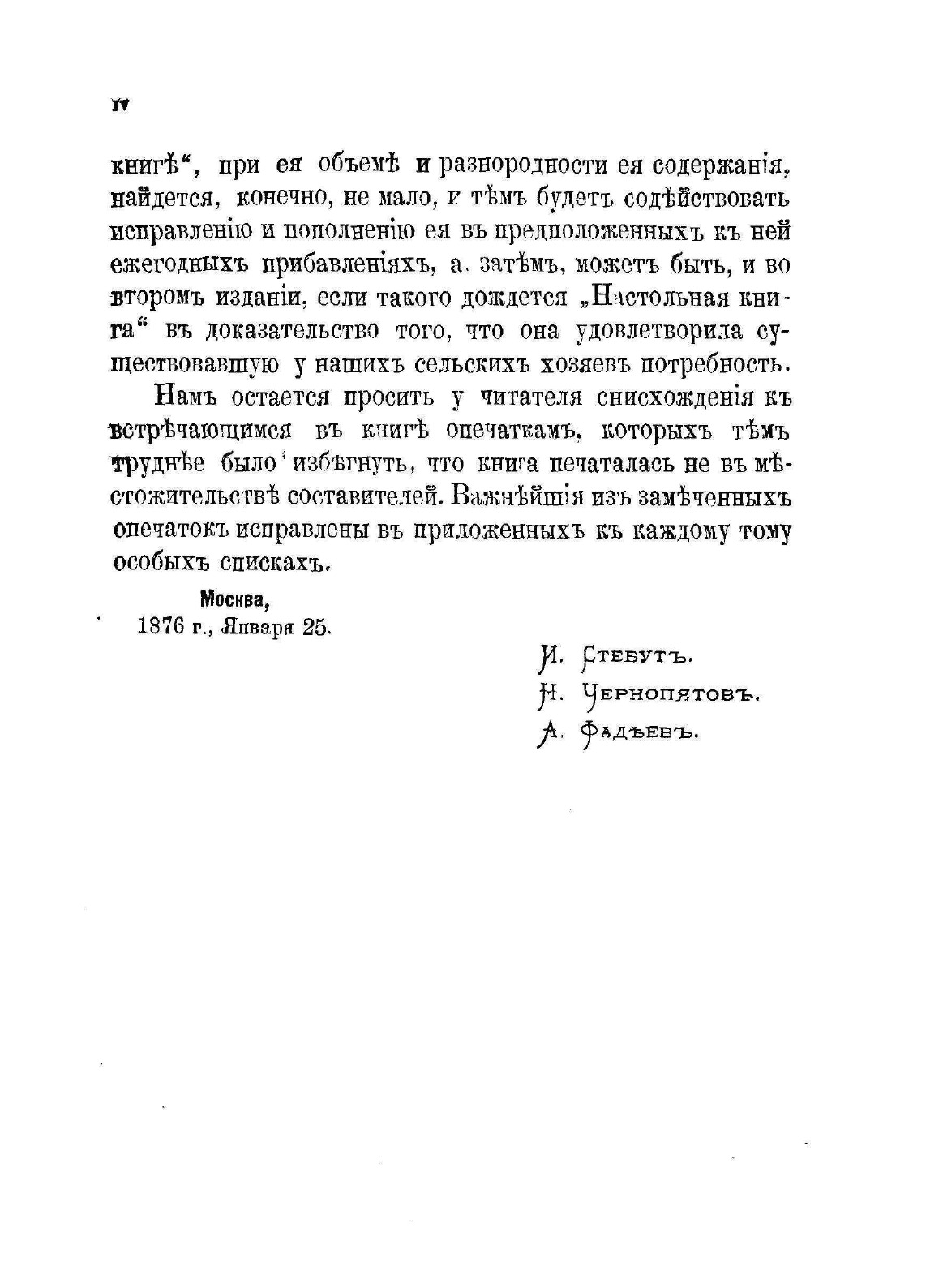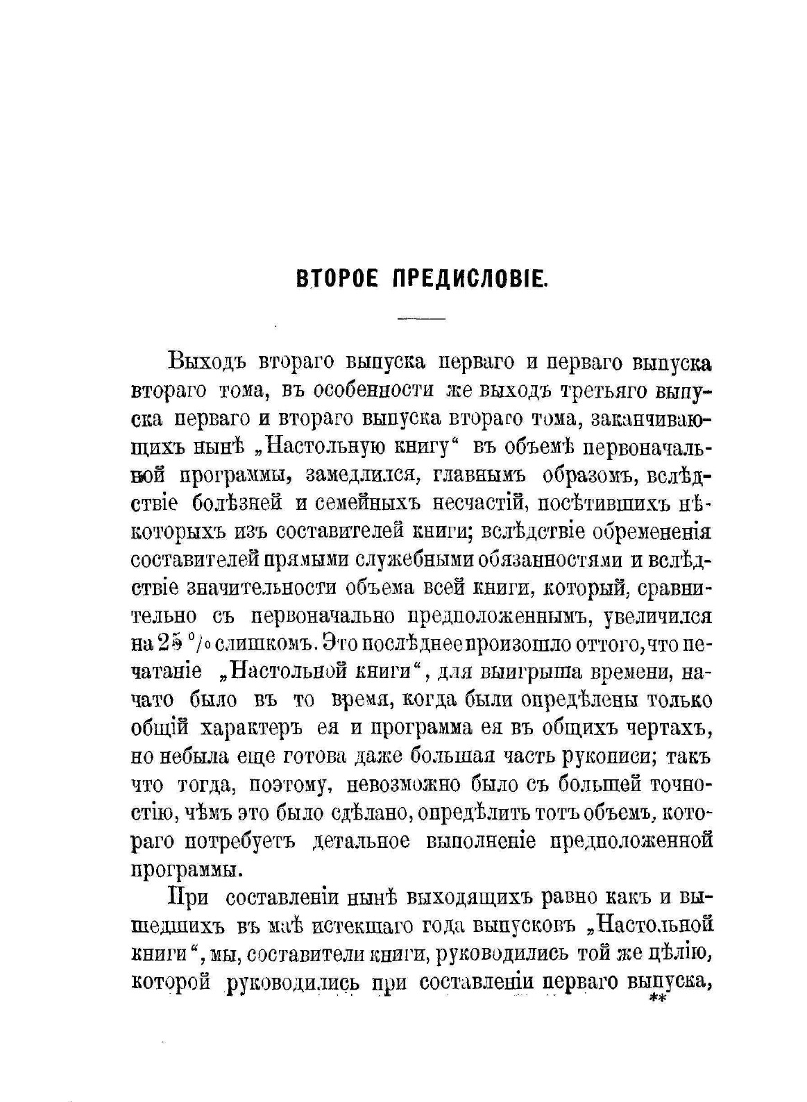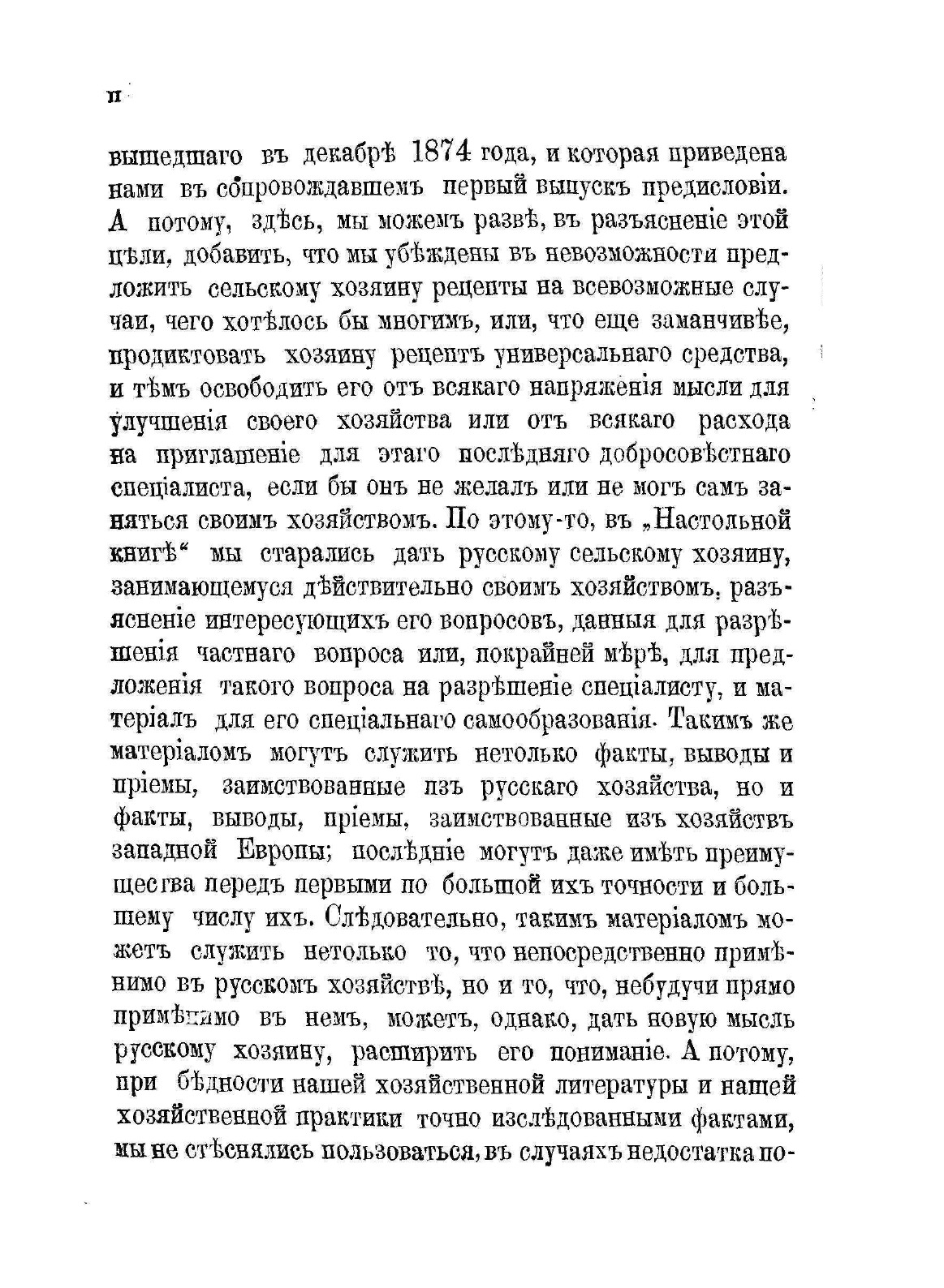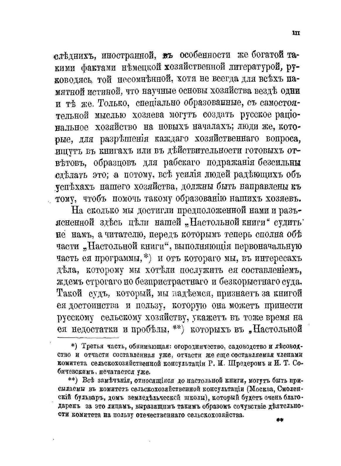 Недостаток в русской сельскохозяйственной литературе сочинений, рассматривающих сельскохозяйственные вопросы в указанных объеме и форме и отсутствие сочинений по некоторым сельскохозяйственным предметам побудили Комитет сельскохозяйственной консультации взяться за составление сочинения, которое удовлетворяло указанным требованиям, т.е. давало бы русскому хозяину возможность найти в нем настолько достаточное разъяснение интересующих его сельскохозяйственных вопросов, что он, затем, если бы и не был в состоянии сам решить вопрос совершенно определенно, мог, по крайней мере, предложить его специалисту в форме, допускающий определенное решение. Такое сочинение, что бы быть доступным для возможного числа занимающихся хозяйством, должно, при невысокой цене его, обнимать возможно большее количество вопросов, с которыми может встретиться сельский хозяин в своем хозяйстве. Вот почва, на которой выросла и созрела мысль о составлении предлагаемой ныне русской сельскохозяйственной публикации «Настольная книга для русских сельских хозяев».