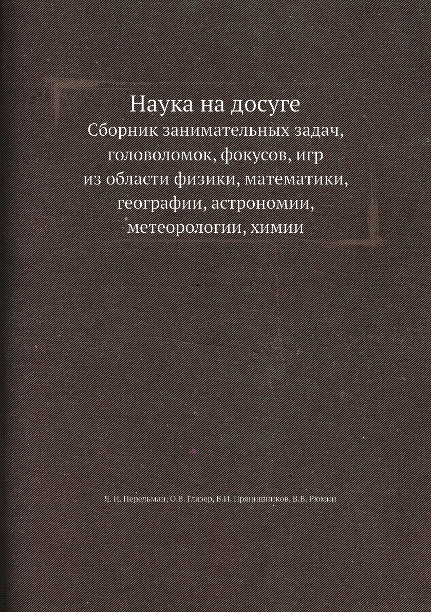 Печатная книга «Наука на досуге, Сборник занимательных задач, головоломок, фокусов, игр из области физики, математики, географии, астрономии, метеорологии, химии» в мягкой обложке, язык - русский. В книге 220 страниц, она напечатана на белой офсетной бумаге плотностью 80 г/м². Формат издания — 148x210 мм. Все книги аккуратно упаковываем в прочный трёхслойный непрозрачный картонный конверт.