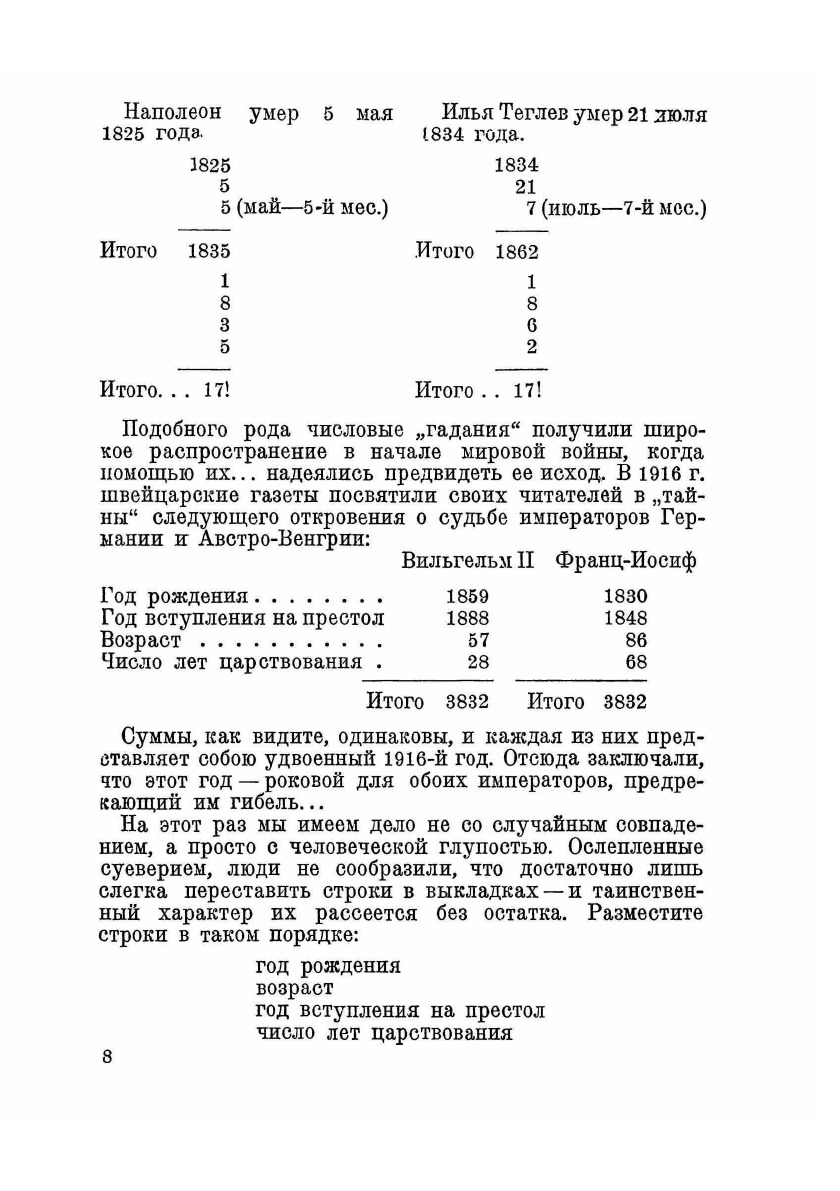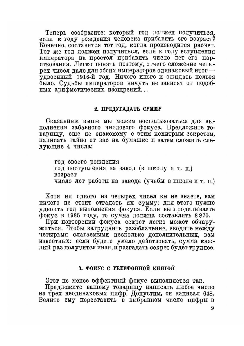 Настоящий сборник „Наука на досуге" ставит своей задачей повысить культурный и общеобразовательный уровень молодого читателя, в частности помочь ему выполнить важнейший лозунг Комсомола: „Каждому комсомольцу— среднее образование". Сборник по содержанию крайне разнообразен; в нем собраны образцы задач, игр, развлечений из арифметики, геометрии, физики, географии, астрономии, метеорологии, химии. Пестрота эта намеренная: цель сборника не в том, чтобы сообщить читателю систематические знания из какой-либо научной области; а в том, чтобы пробудить живой интерес к научным занятиям. Разные умы имеют не одинаковые склонности; заинтересовать всех одним и тем же нельзя. Вот почему наш сборник, при сравнительно небольшом объеме, составлен так разнородно: если не одно, то другое окажется способным натолкнуть на путь самообразовательной работы. . .