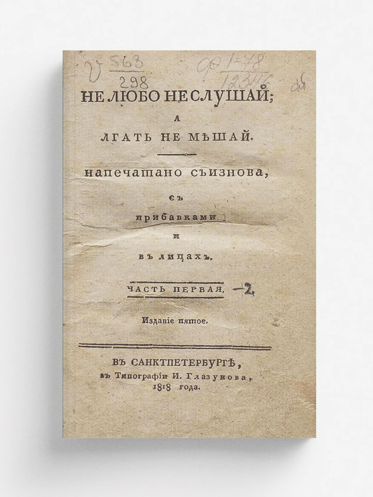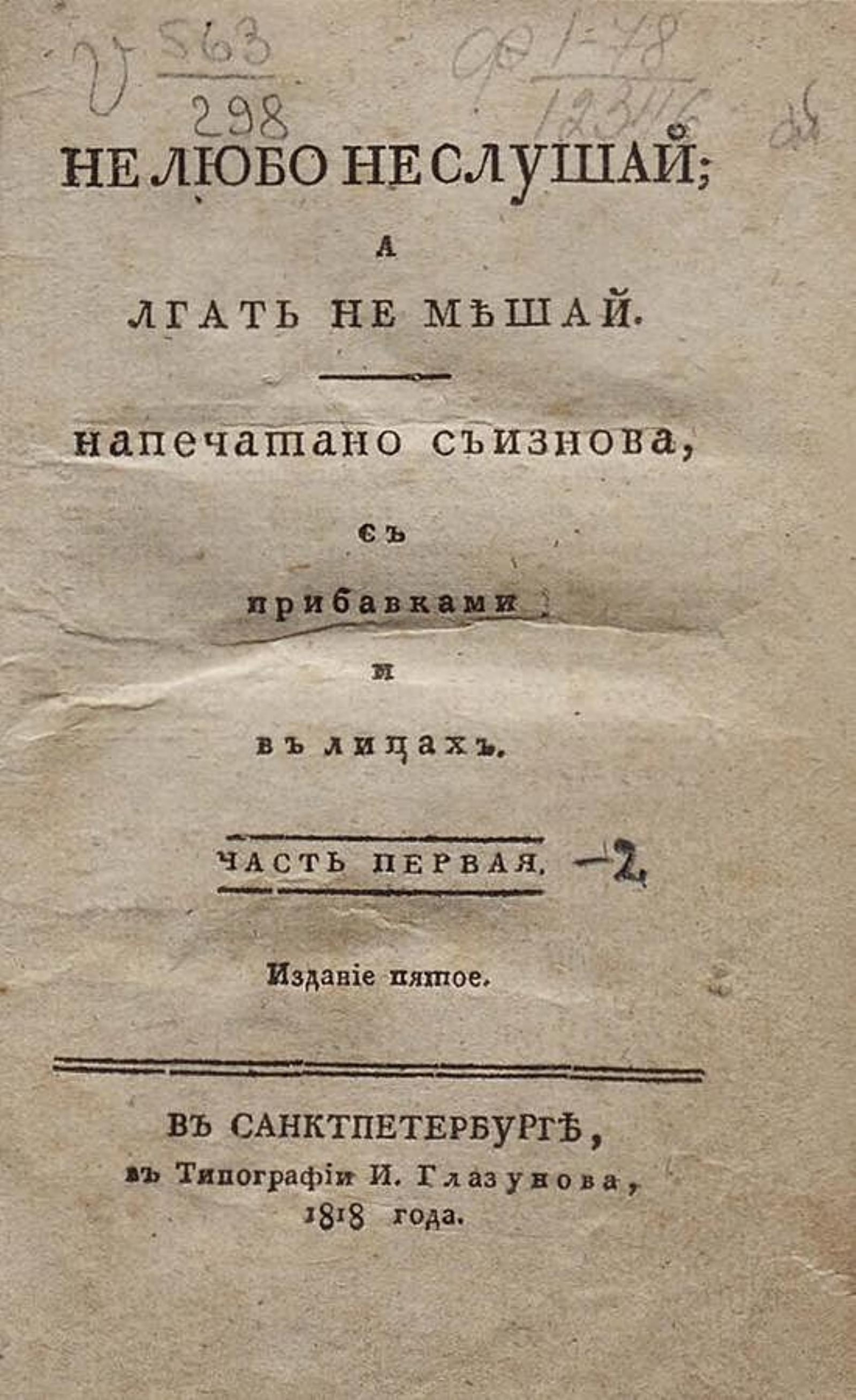 Не любо не слушай, а лгать не мешай : [Текст] : часть 1–2. — 5-е изд. — Санкт-Петербург, 1818.
