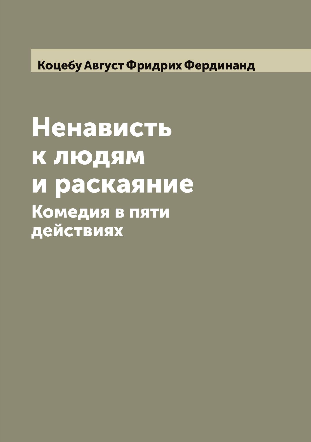 Печатная книга «Ненависть к людям и раскаяние, Комедия в пяти действиях» в мягкой обложке, язык - русский. В книге 237 страниц, она напечатана на белой офсетной бумаге плотностью 80 г/м². Формат издания — 148x210 мм. Все книги аккуратно упаковываем в прочный трёхслойный непрозрачный картонный конверт.