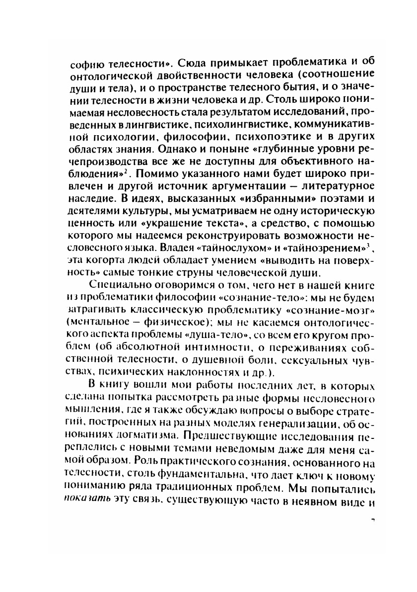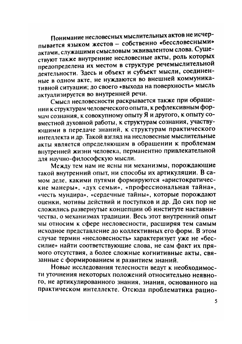 В книге анализируются ключевые проблемы не-словесных мыслительных актов. В качестве основных используются коммуникативный и аксиологический подходы. Типология несловесности строится на основе исследования языка тела, внутренней речи, внутреннего опыта, совместных духовных практик. Проблемы современного образования анализируются в контексте иерархии ценностей (новые технологии и практический интеллект).