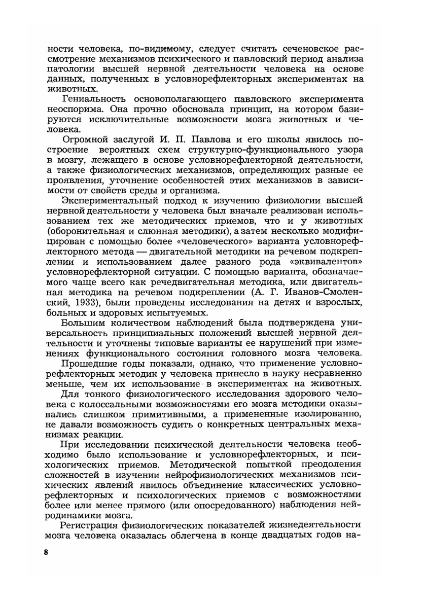 В работе излагаются основные этапы изучения физиологии мозгового обеспечения психических процессов и современные данные о нейрофизио-логических механизмах этих процессов, полученные в результате прямого изучения физиологии мозга человека. Многолетние исследования по ходу диагностики и лечения больных методом вживления электродов с помощью комплексного метода, включающего наблюдение динамики физиологических показателей мозга при реализации психической деятельности и динамики спонтанных и вызванных психических процессов при локальных электрических воздействиях на мозг, позволили накопить большое количество новых данных о физиологических механизмах психических явлений. В результате анализа этих данных выдвинуто предположение, что мозговое обеспечение психической деятельности осуществляется корково-подкорковой структурно-функциональной системой со звеньями различной степени жесткости. Рассматриваются основные теоретические перспективы развития проблемы и возможности расширения лечебных воздействий в психиатрической и нервной клинике на основе новых данных о мозге человека. 2-е издание дополнено материалами о наиболее тонких характеристиках импульсной активности нейронных ансамблей мозга человека при психической деятельности. Монография рассчитана на физиологов, невропатологов, нейропсихологов, психиатров и врачей других специальностей.