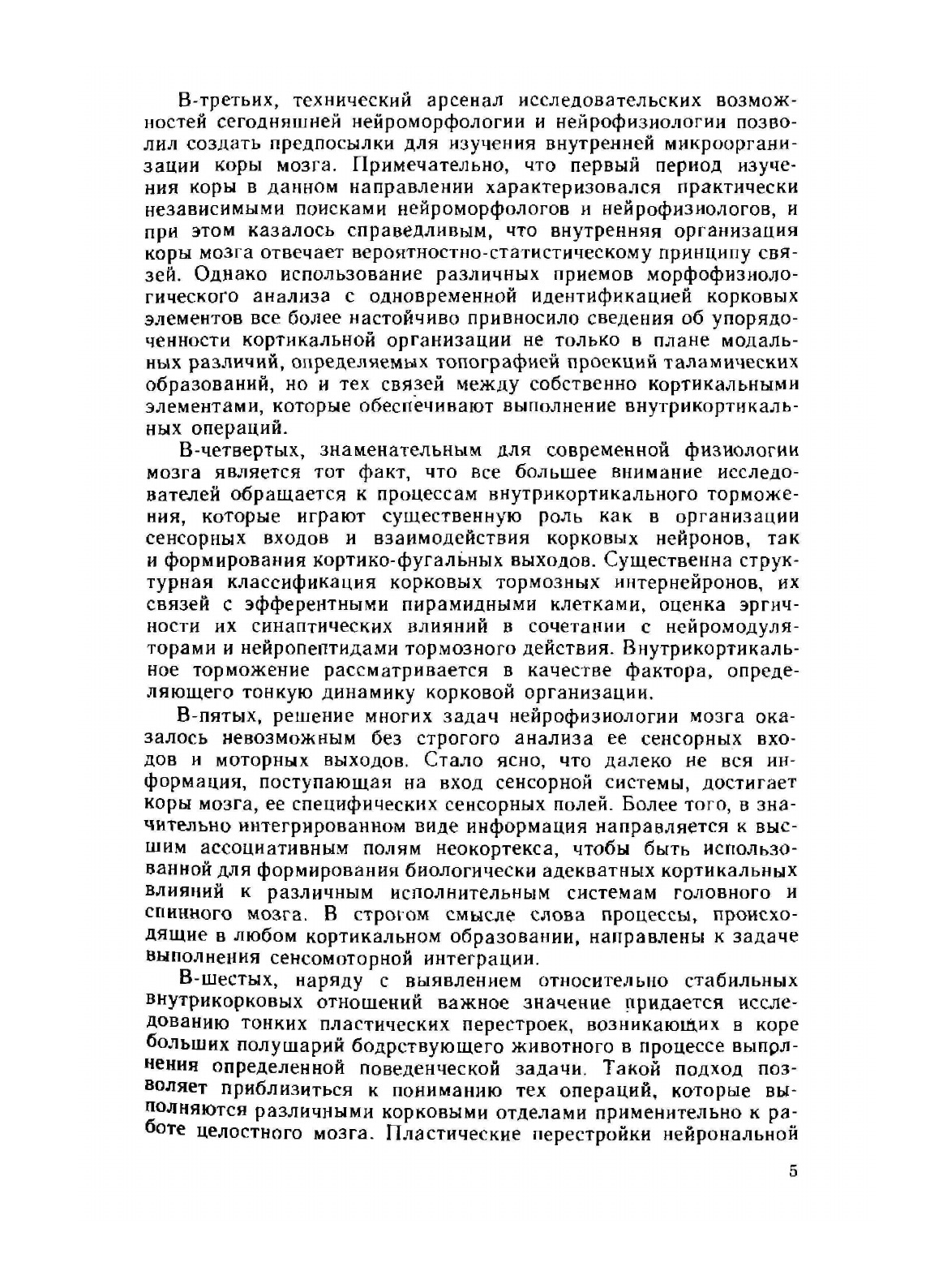 Книга содержит основные сведения по микро- и макроструктуре высшего отдела головного мозга - коры больших полушарий. Дается характеристика клеточного и субклеточного уровня уровней, электрических и химических механизмов взаимодействия нейронов, закономерностей созревания коры мозга в индивидуальном развитии организма, роли коры головного мозга в приеме и переработке сенсорной информации, программировании и организации целенаправленных двигательных актов.