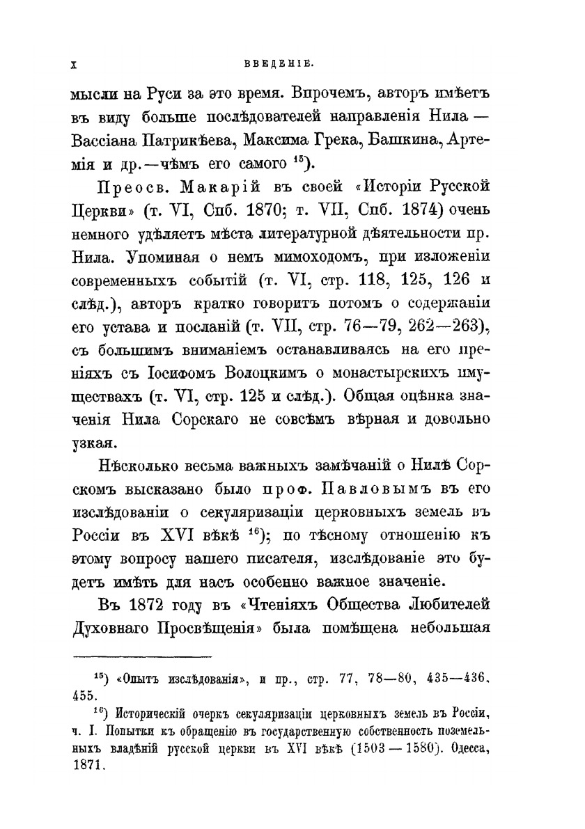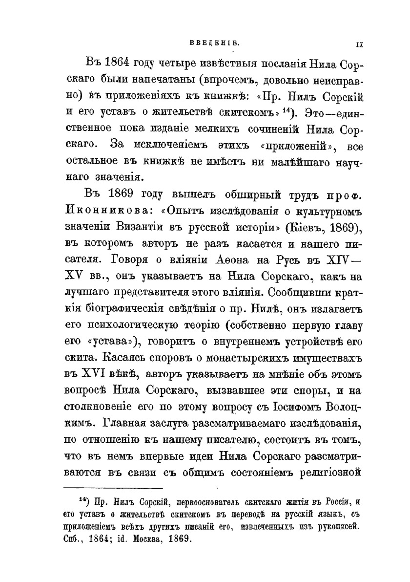 Нил Сорский и Вассиан Патрикеев. Их литературные труды и идеи в Древней Руси. Часть 1. Историко-литературный очерк А. С. Архангельского.Санкт-Петербург: Типография И. Вощинского, 1882.