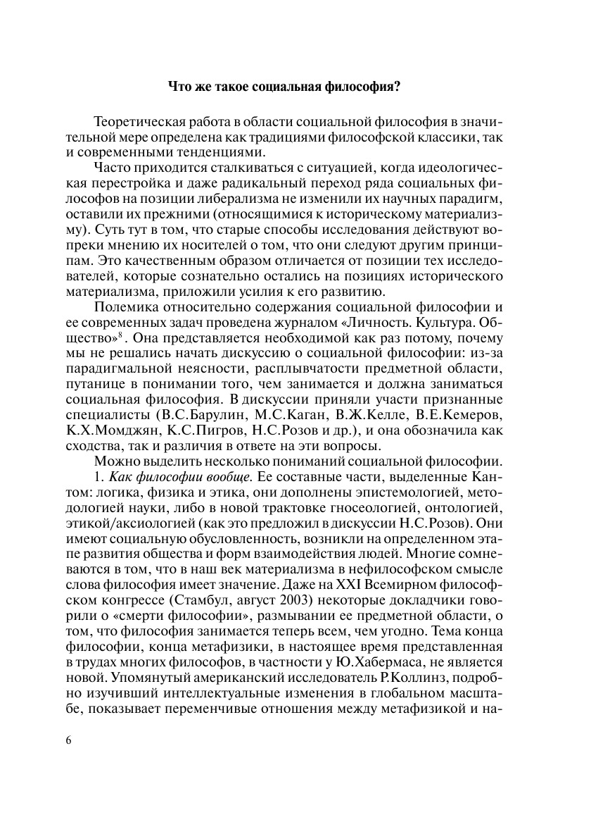 Коллективная монография посвящена осмыслению задач социальной философии, раскрытию ее актуальной проблематики. Сущность социального выявляется сегодня из анализа новых ситуаций, а также посредством реинтерпретации классических социальных теорий. К числу таких глав относятся те, которые посвящены универсальности, общественному богатству, эволюции капитализма и развитию экономической науки в контексте этой эволюции. Анализируются сравнительно новые понятия о внеэкономическом капитале, позволяющие дополнить реинтерпретации классики новыми аргументами. Авторы обращаются к проблемам не только самого общего уровня, но и среднего, и микроуровня. В монографии отмечается значительное усложнение подлежащих формулировке и разрешению проблем и обсуждаются новые методологические принципы.