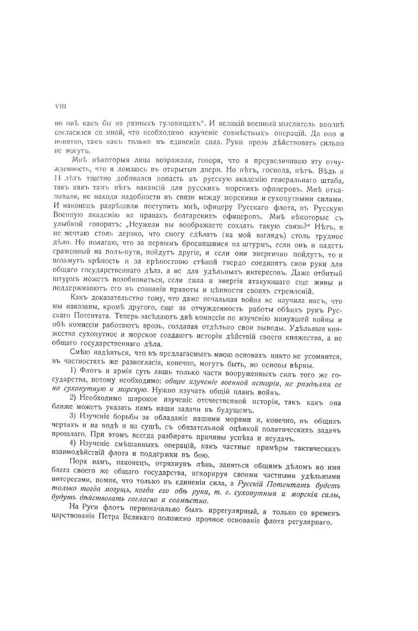 Данное издание является первым прижизненным издание автора, который полностью описывает историю развития Российского флота и кораблестроения, в сочетании с кратким изложением истории флота вообще. Автор проводит краткий экскурс в историю флота, начиная от первых судов древних славян и варягов и развития флота таких ведущих морских держав XV-XVII столетия как Португалии, Испании, Англии.Но основа этого монументального труда, описивается очень подробно и достоверно развитие всего флота и кораблестроения в России, начиная со времен Петра Великого до времен последнего Романова, Николая II.