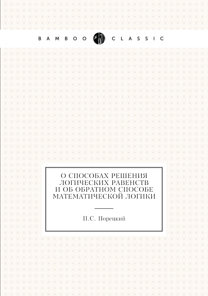 О способах решения логических равенств и об обратном способе математической логики : [Опыт построения полной и общедоступной математической теории умозаключений над качеств. формами] : Два сообщ., чит. 27 февр. и 23 марта 1882 г. в заседаниях Физ.-мат. се
