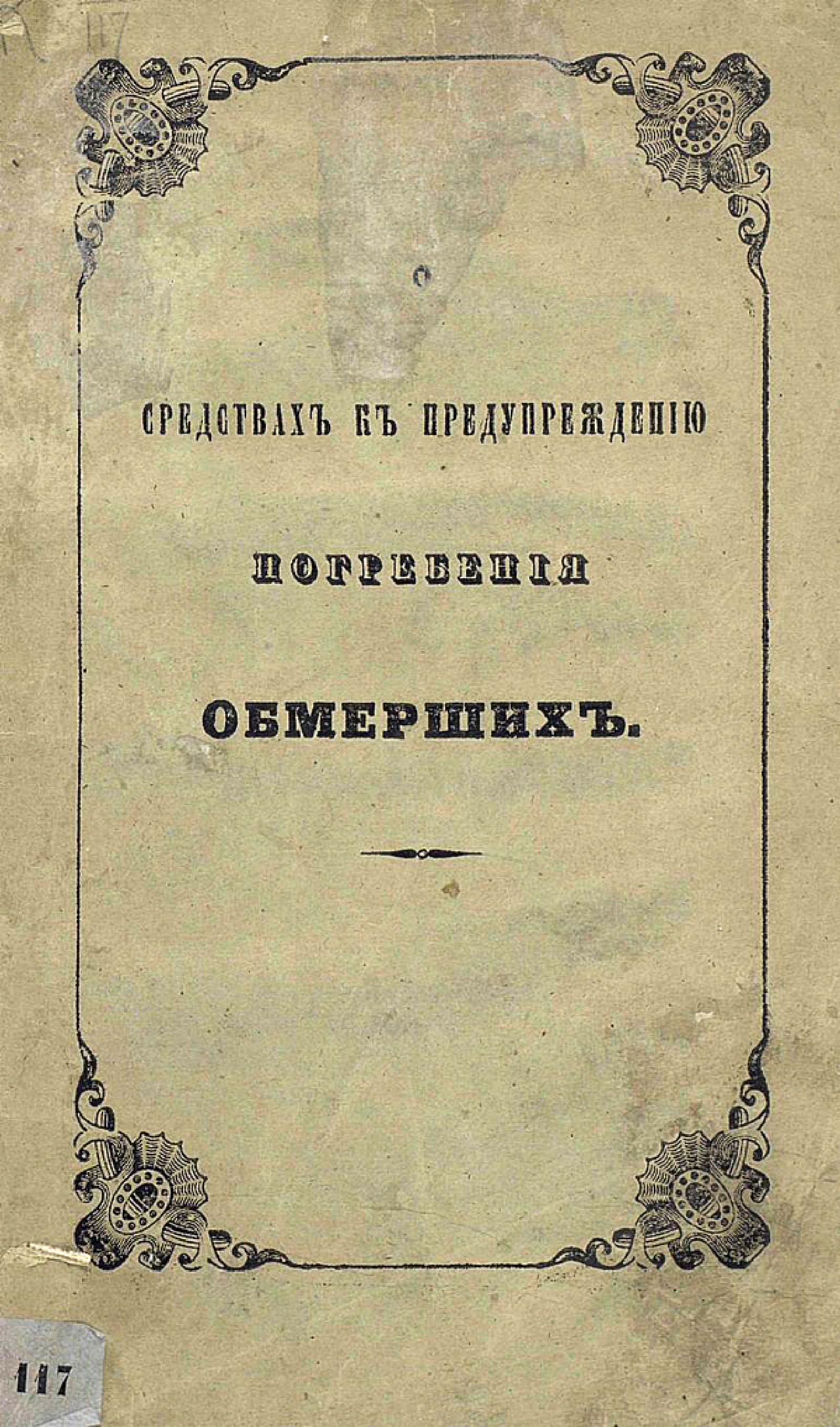 О средствах к предупреждению погребения обмерших. — [Санкт-Петербург] : Типография Министерства Внутренних Дел, 1846. — 92 с.