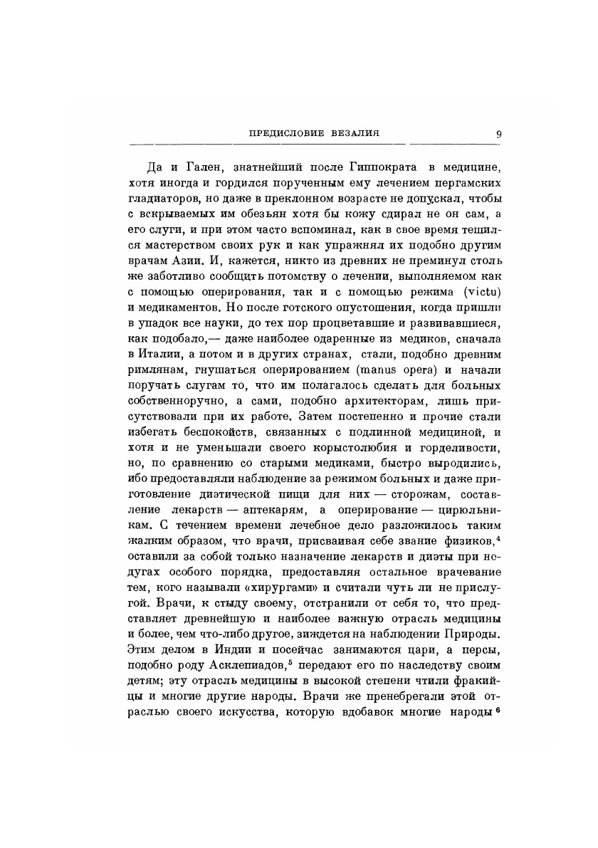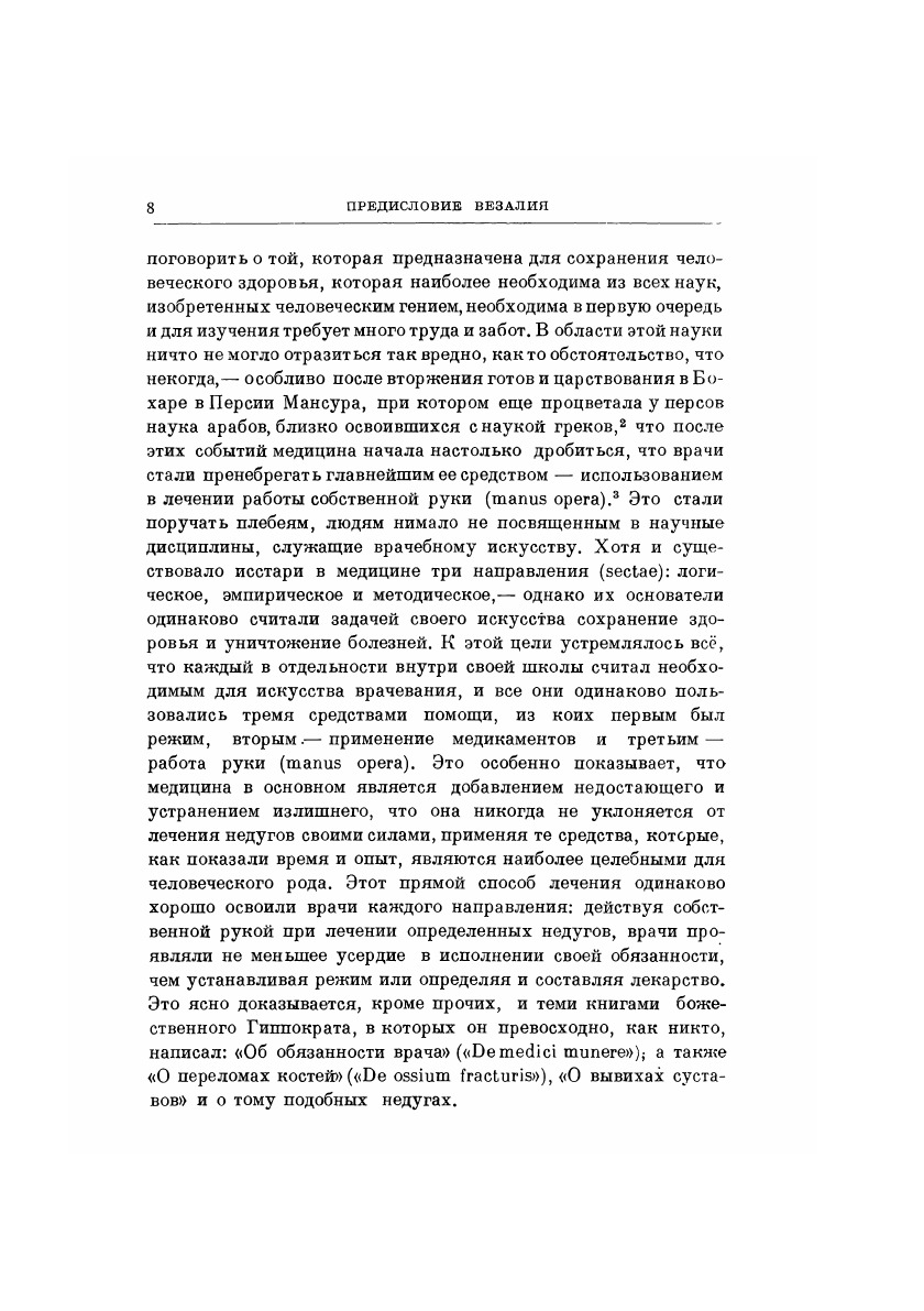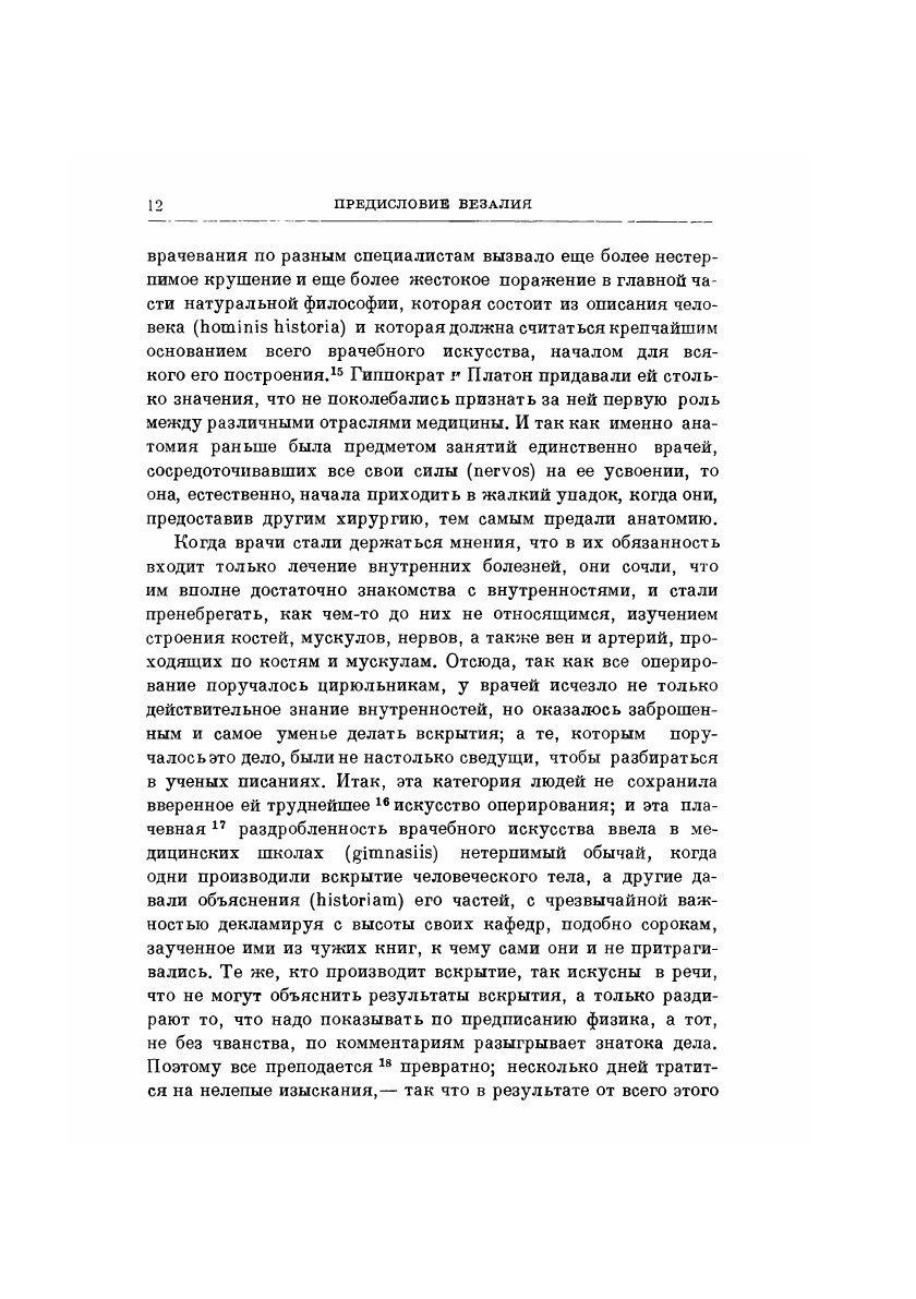 Труд Везалия явился началом современной анатомии; в нем впервые в истории анатомии было дано не умозрительное, а вполне научное описание строения человеческого тела, основанное на экспериментальных исследованиях. Отец анатомии, Везалий внес огромный вклад в анатомическую терминологию на латинском языке. Взяв за основу наименования, введенные Авлом Корнелием Цельсом (I в. до н.э.), Везалий придал анатомической терминологии единообразие, выбросил, за крайне редкими исключениями, все средневековые варваризмы. Одновременно он свел до минимума грецизмы, что в какой-то мере можно объяснить его неприятием многих положений галеновской медицины. Примечательно, что будучи новатором в анатомии, Везалий полагал, что носителем психического являются «животные духи», которые вырабатываются в желудочках мозга. Этот взгляд напоминал теорию Галена, ибо указанные «духи» были всего лишь переименованной «психической пневмой» древних.