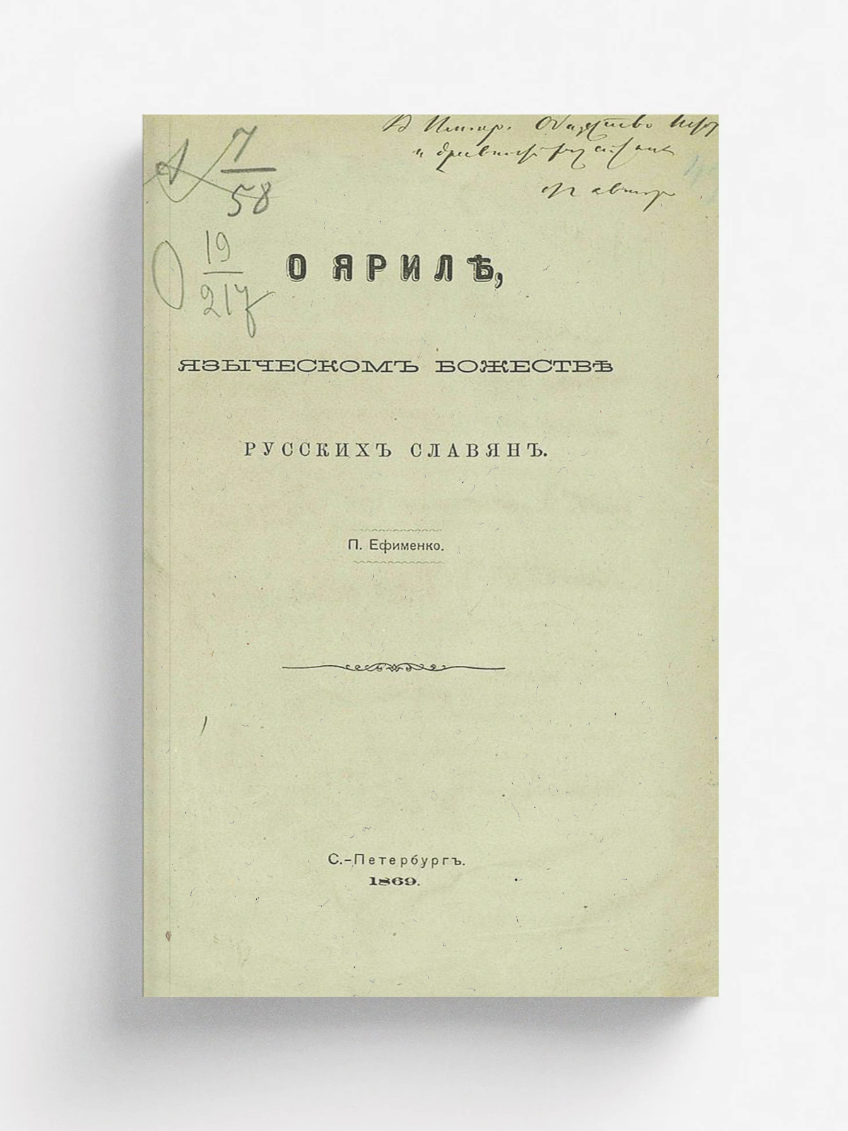 Ефименко, Петр Саввич (1835–1908). О Яриле, языческом божестве русских славян / [Соч.] П. Ефименко. — Санкт–Петербург : тип. Майкова, 1868. — 36 с.; 24.
