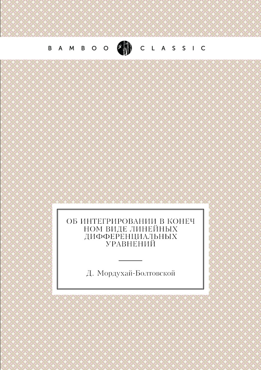 Печатная книга «Об интегрировании в конечном виде линейных дифференциальных уравнений» в мягкой обложке, язык - русский. В книге 390 страниц, она напечатана на белой офсетной бумаге плотностью 80 г/м². Формат издания — 148x210 мм. Все книги аккуратно упаковываем в прочный трёхслойный непрозрачный картонный конверт.