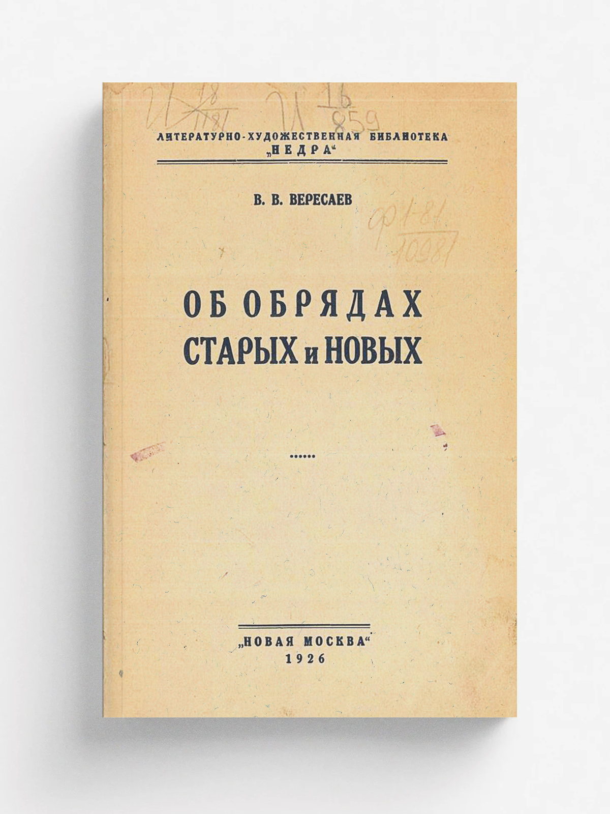 Вересаев, Викентий Викентьевич (1867–1945). Об обрядах старых и новых [Текст] / В. В. Вересаев. — Москва, 1926. — 30 c. — (Литературно-художественная библиотека «Недра»).