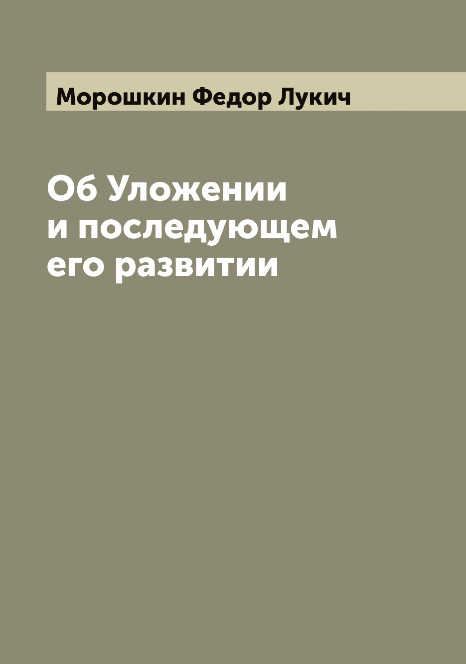Печатная книга «Об Уложении и последующем его развитии» в мягкой обложке, язык - русский. В книге 87 страниц, она напечатана на белой офсетной бумаге плотностью 80 г/м². Формат издания — 165x235 мм. Все книги аккуратно упаковываем в прочный трёхслойный непрозрачный картонный конверт.