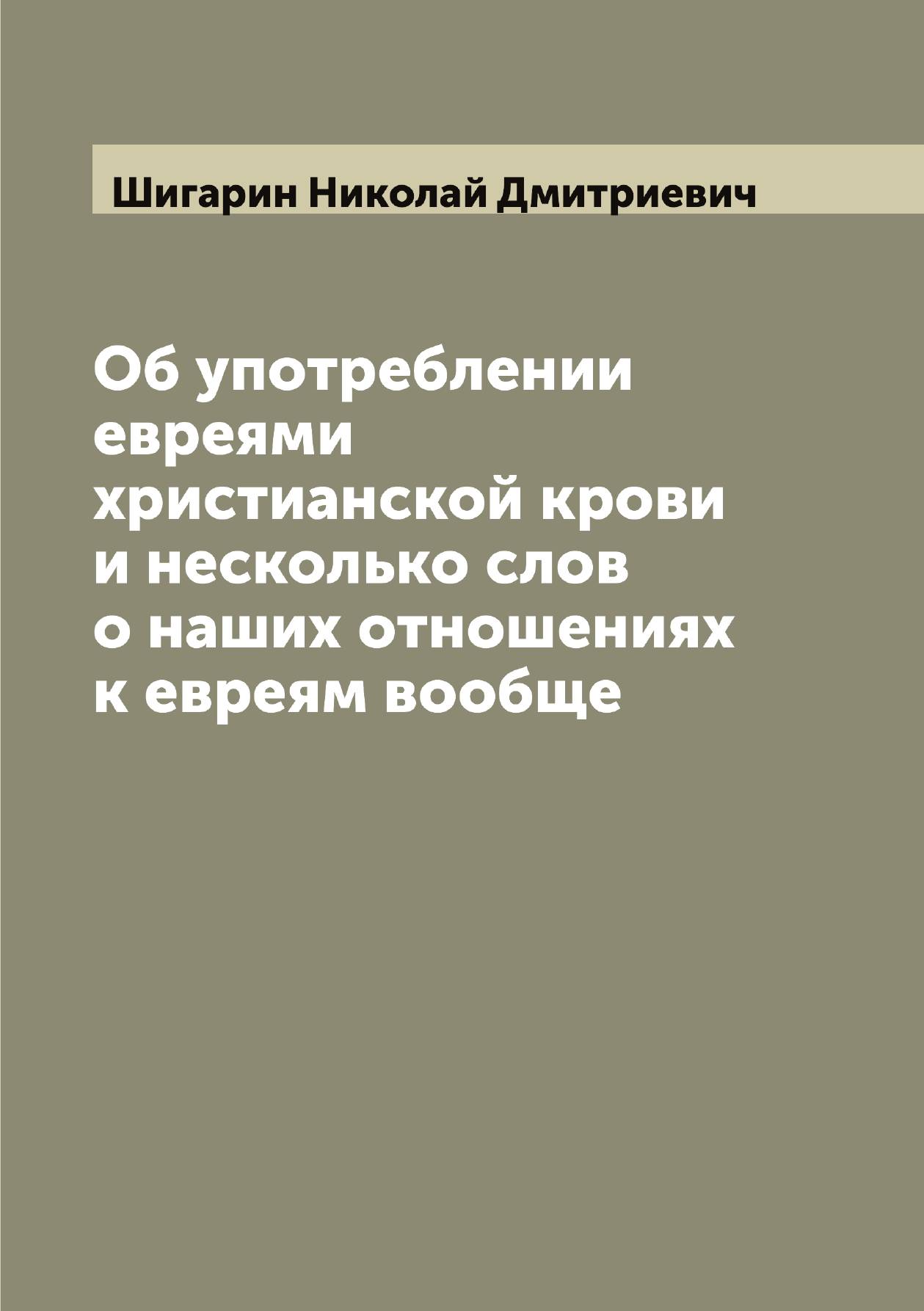Печатная книга «Об употреблении евреями христианской крови и несколько слов о наших отношениях к евреям вообще» в мягкой обложке, язык - русский. В книге 159 страниц, она напечатана на белой офсетной бумаге плотностью 80 г/м². Формат издания — 148x210 мм. Все книги аккуратно упаковываем в прочный трёхслойный непрозрачный картонный конверт.