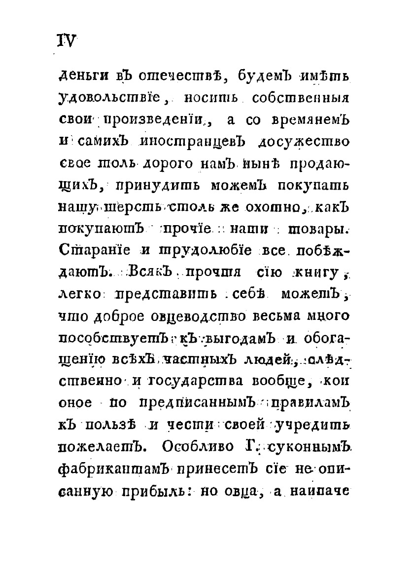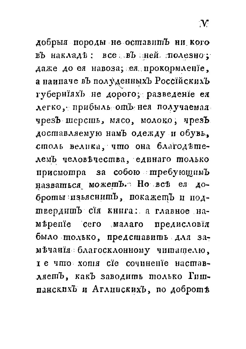 Всякому послужит сия книга верным кормилом и надежным путеводителем, кто при овцеводстве, откинув вредные предрассудки, последует ее наставлениям, ибо правила ее столь же несомненны, как и обещания ее непреложны. Пусть только добрая воля к сему важному делу возродится, трудолюбие и попечение при оном не погаснут, и благородная твердость в достижении намерения не ослабнет!