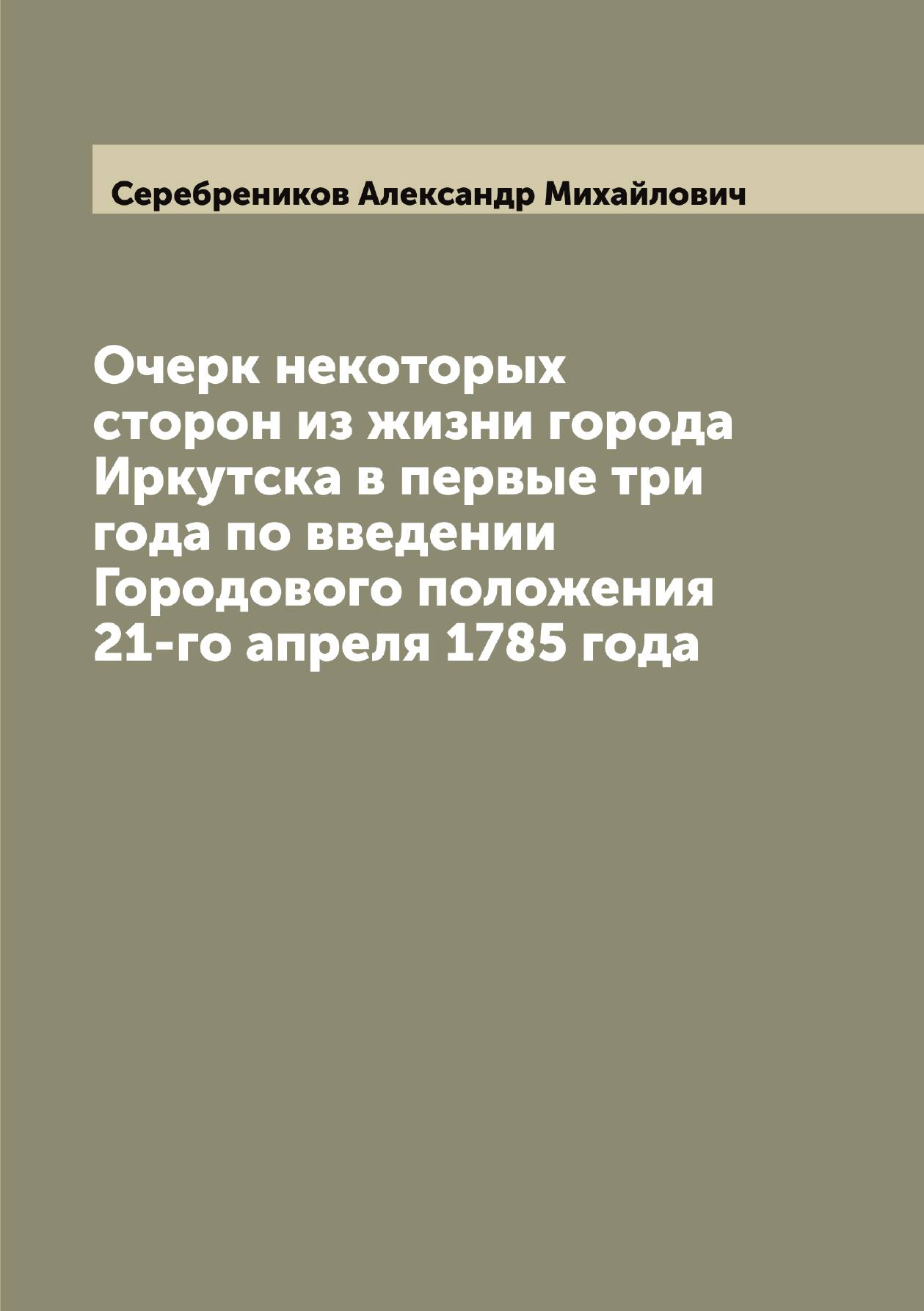 Печатная книга «Очерк некоторых сторон из жизни города Иркутска в первые три года по введении Городового положения 21-го апреля 1785 года» в мягкой обложке, язык - русский. В книге 107 страниц, она напечатана на белой офсетной бумаге плотностью 80 г/м². Формат издания — 148x210 мм. Все книги аккуратно упаковываем в прочный трёхслойный непрозрачный картонный конверт.