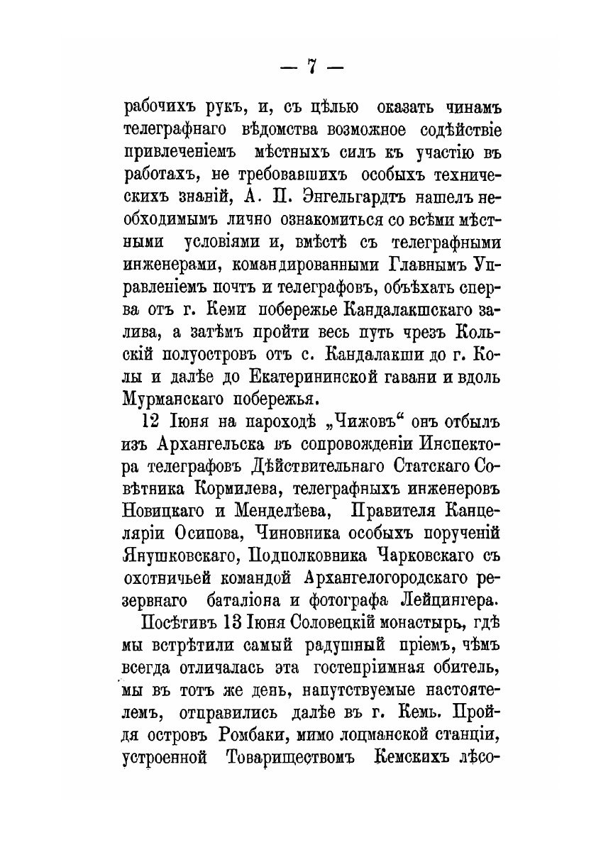 Очерк путешествия Архангельского губернатора А. П. Энгельгардта в Кемский и Кольский уезды в 1895 году. Архангельск, губернская типография, 1895 год.