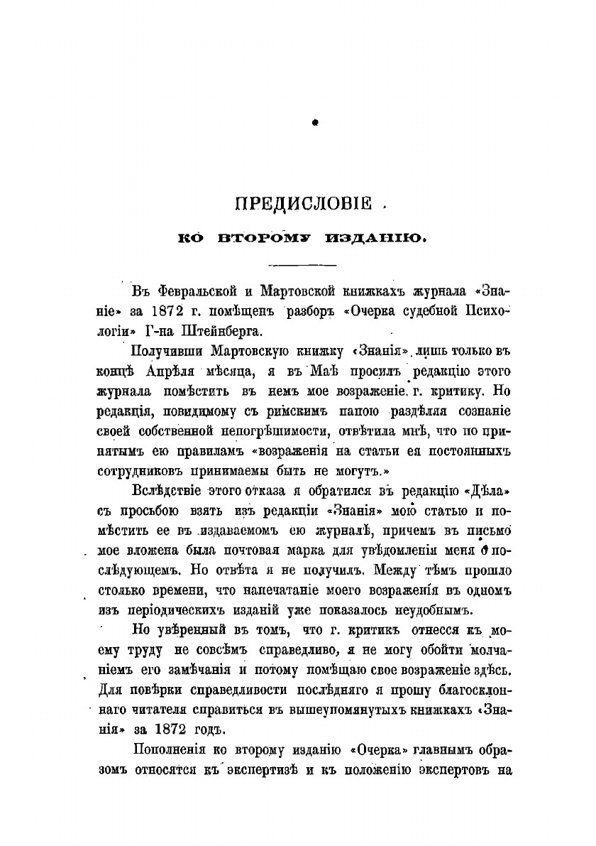 Способ изложения предмета, принятый в предлагаемом труде, многие найдут слишком сжатым и догматическим. Но «Очерк» не есть ни руководство, ни настольная книга для справок. Он должен лишь служить подготовкой для более подробного изучения судебной психологии. Главная цель его – ознакомить читателя с важнейшими опытными данными психологии и психиатрии, служащими основанием для решения вопроса о неспособности к вменению вины. Практические наставления, дошедшие до нас спустя сто лет, но актуальные и по сей день, по наставлениям которых можно и сейчас внести разнообразие в свою повседневную жизнь и отдать дань тому самому прошлому, где, как хочется верить, было и полезно, и чинно.