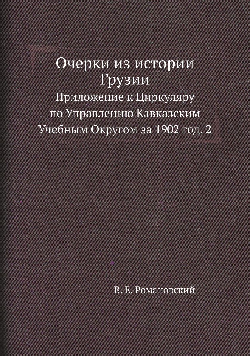 Печатная книга «Очерки из истории Грузии, Приложение к Циркуляру по Управлению Кавказским Учебным Округом за 1902 год. 2» в мягкой обложке, язык - русский. В книге 539 страниц, она напечатана на белой офсетной бумаге плотностью 80 г/м². Формат издания — 148x210 мм. Все книги аккуратно упаковываем в прочный трёхслойный непрозрачный картонный конверт.