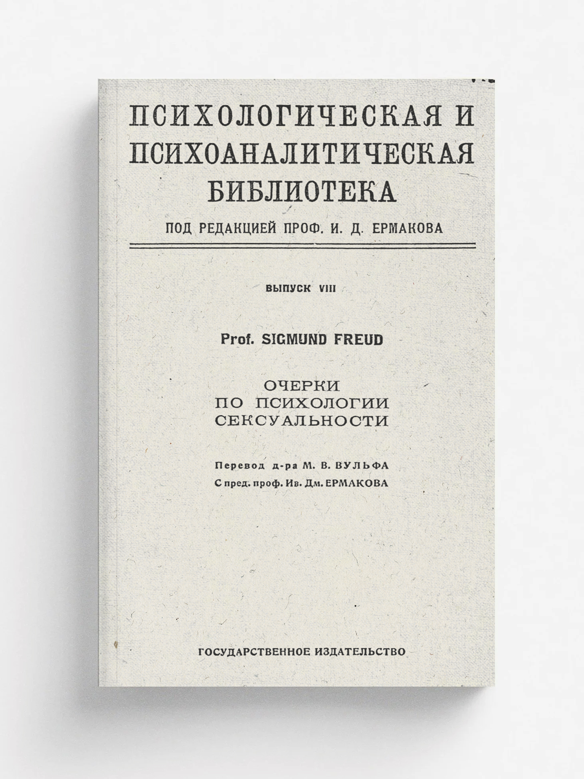 Фрейд З. Очерки по психологии сексуальности / Prof. Sigmund Freud; Пер. д-ра М. В. Вульфа, С предисл. проф. Ив. Дм. Ермакова. — М., Пг. : Гос. изд-во, 1924. — 188, [1] с.; 23 см. — (Психологическая и психоаналитическая библиотека).