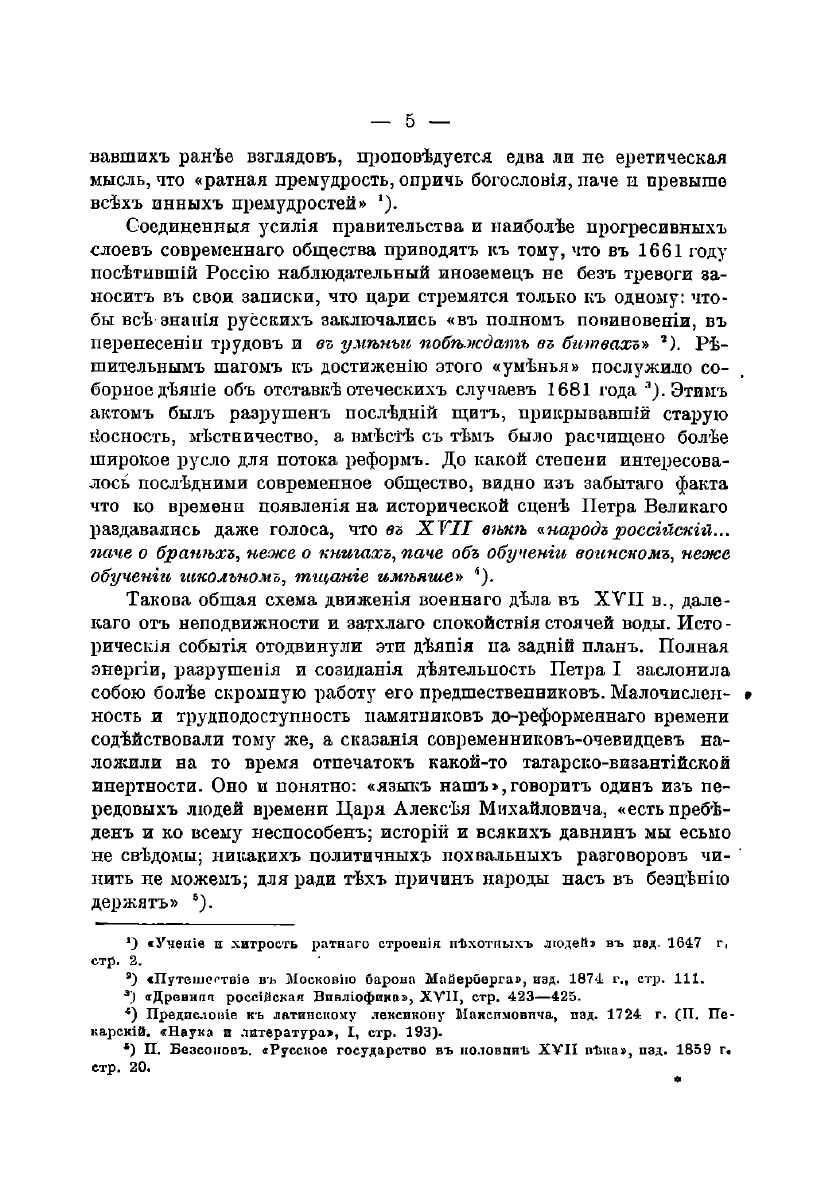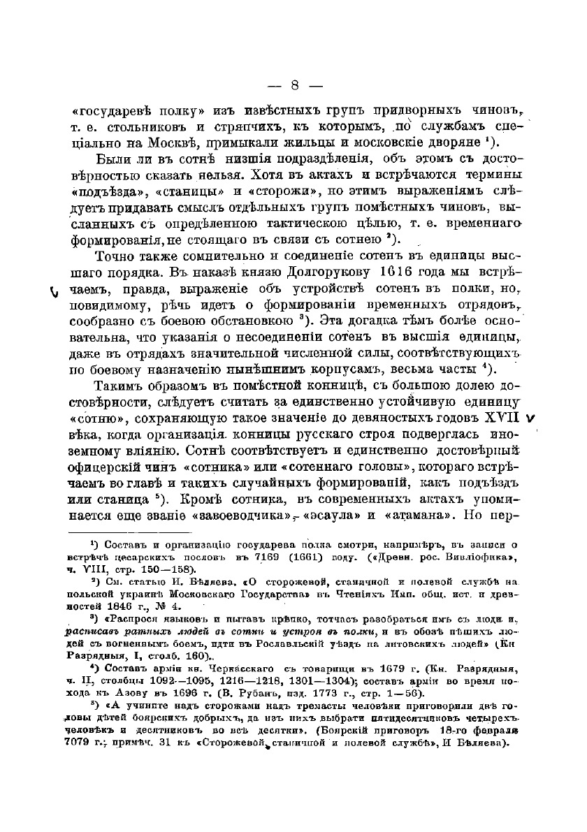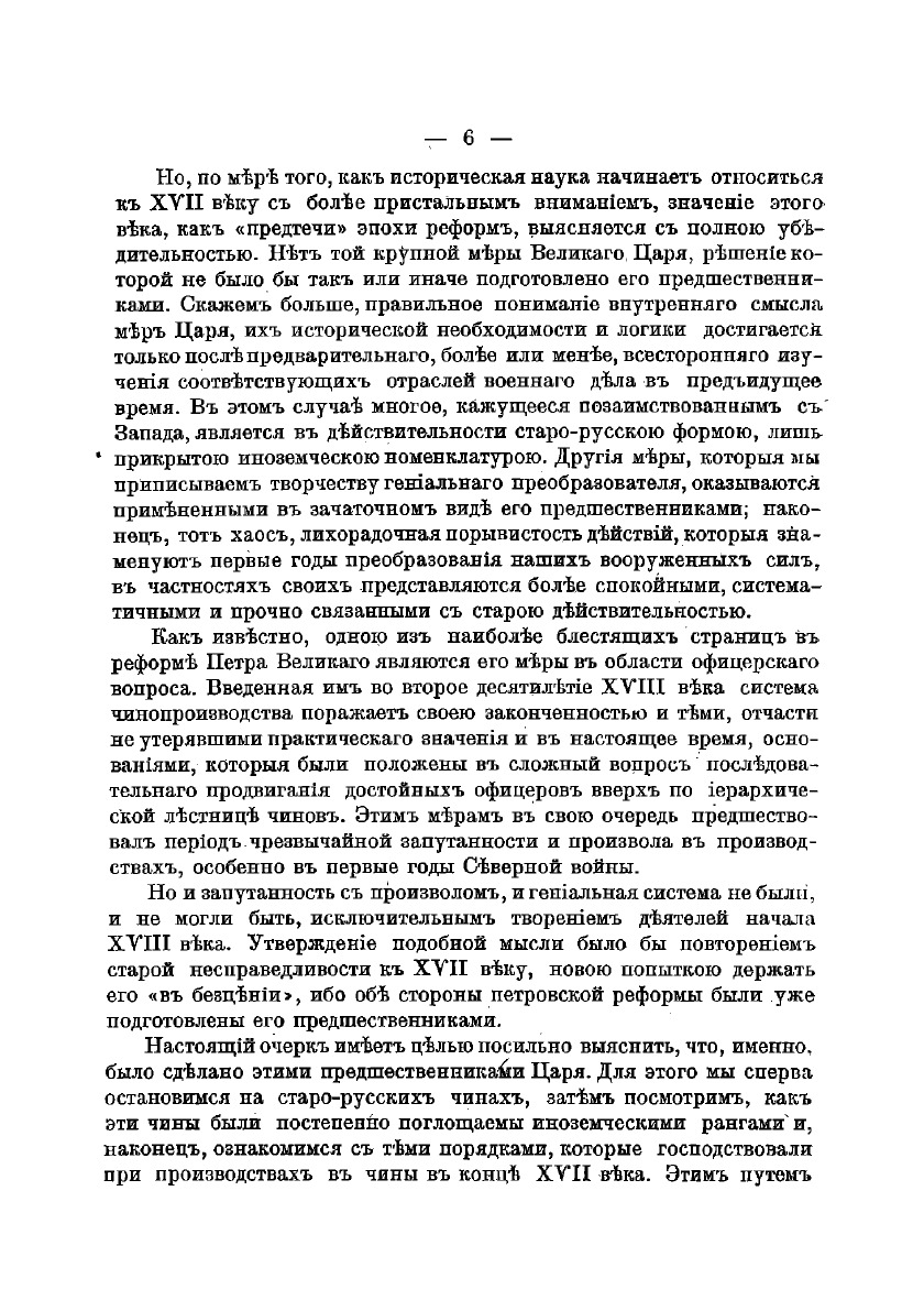 Статья А. З. Мышлаевского рассматривает положение офицерского вопроса в вооруженных силах Московского государства в течение XVII столетия. Временные рамки допетровского периода отмечены введением изменений в военном деле. В обзоре Мышлаевского намечены главные этапы в движении офицерского вопроса, автор показывает, как вопрос постепенно видоизменялся в своих практических проявлениях и, в окончательном итоге, завершился полным торжеством иностранной иерархии над старо-русской.В XVII веке произошли решительные изменения взглядов на место офицерского чина в области сословных соотношений современного общества. Успех в области офицерского вопроса подготовил и значительно облегчил реформаторскую деятельность Петра I.