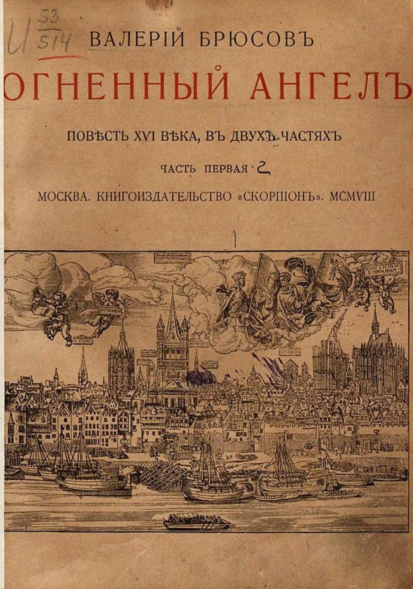 Брюсов, Валерий Яковлевич (1873–1924). Огненный ангел : Повесть 16 в. [в двух ч. Ч. 1-2] / Валерий Брюсов. - Москва : Скорпион, 1908. - 2 т.; 24.