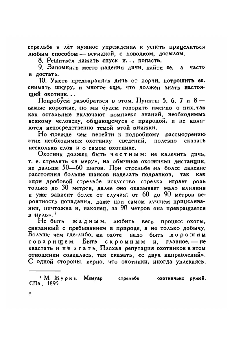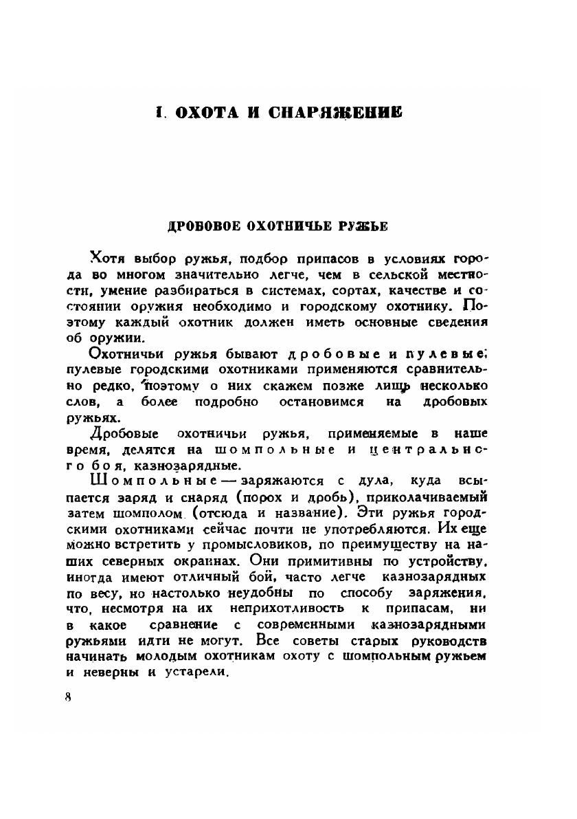 У нас есть много хороших руководств для начинающих охотников, но нет ни одного, где бы серьезно учитывались эти специфические городские условия. А молодых охотников в больших городах — тысячи. Вот для таких-то начинающих охотников, поставленных в трудные условия жизни большого города, но страстно желающих культурно приобщиться к этому прекрасному спорту, и предназначена в основном моя книга. В ней я стараюсь как можно меньше говорить о том, о чем уже писалось много и хорошо, и останавливаюсь подробно на том, о чем, с моей точки зрения, писали неверно либо вовсе не писали....
