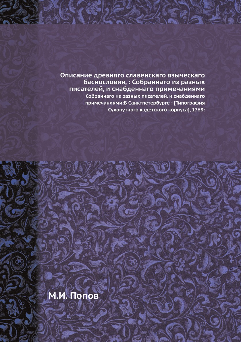 Печатная книга «Описание древняго славенскаго языческаго баснословия, : Собраннаго из разных писателей, и снабденнаго примечаниями, Собраннаго из разных писателей, и снабденнаго примечаниями:В Санктпетербурге : [Типография Сухопутного кадетского корпуса], 1768:» в мягкой обложке, язык - русский. В книге 62 страниц, она напечатана на белой офсетной бумаге плотностью 80 г/м². Формат издания — 148x210 мм. Все книги аккуратно упаковываем в прочный трёхслойный непрозрачный картонный конверт.