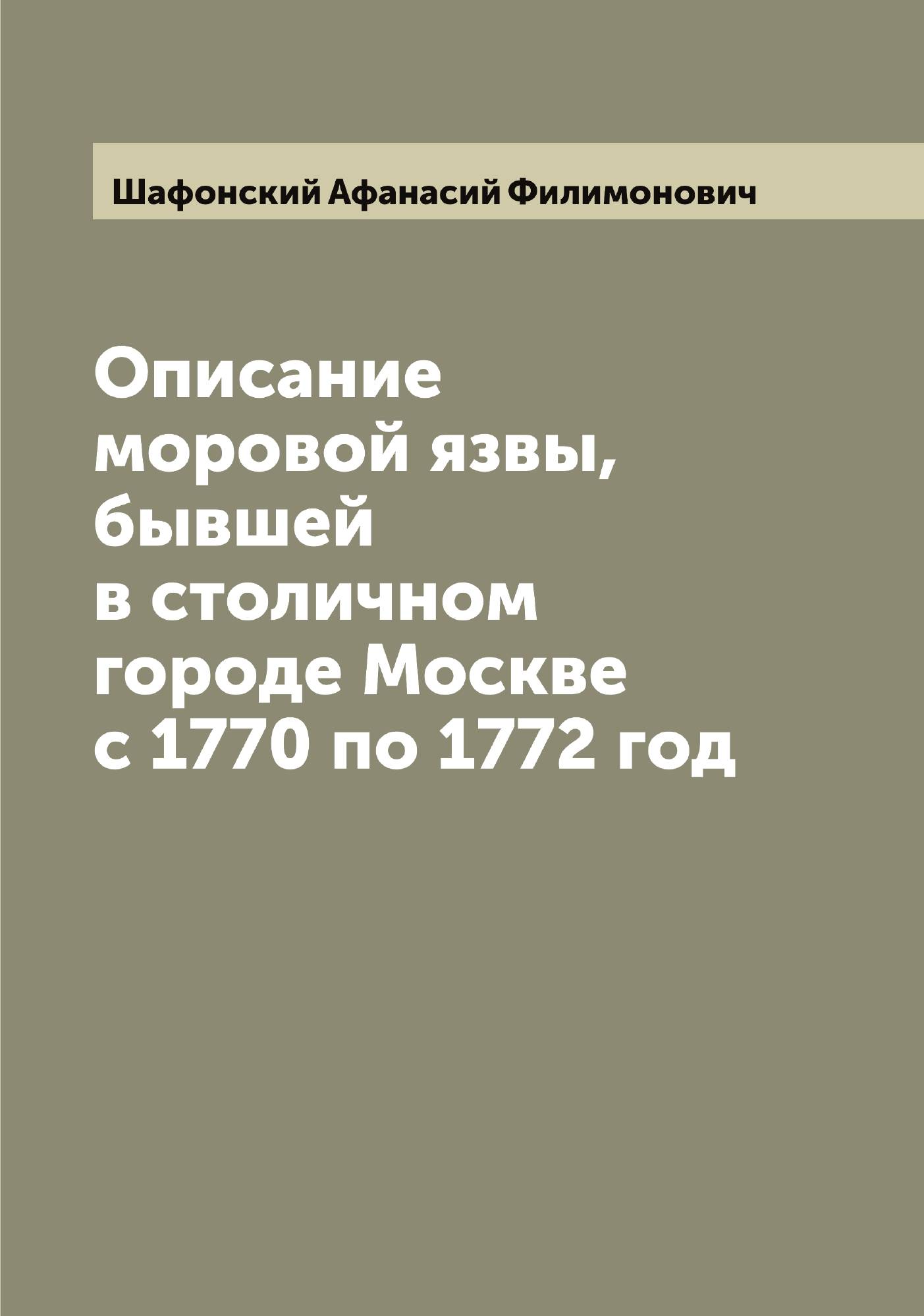 Печатная книга «Описание моровой язвы, бывшей в столичном городе Москве с 1770 по 1772 год» в мягкой обложке, язык - русский. В книге 683 страниц, она напечатана на белой офсетной бумаге плотностью 80 г/м². Формат издания — 165x235 мм. Все книги аккуратно упаковываем в прочный трёхслойный непрозрачный картонный конверт.