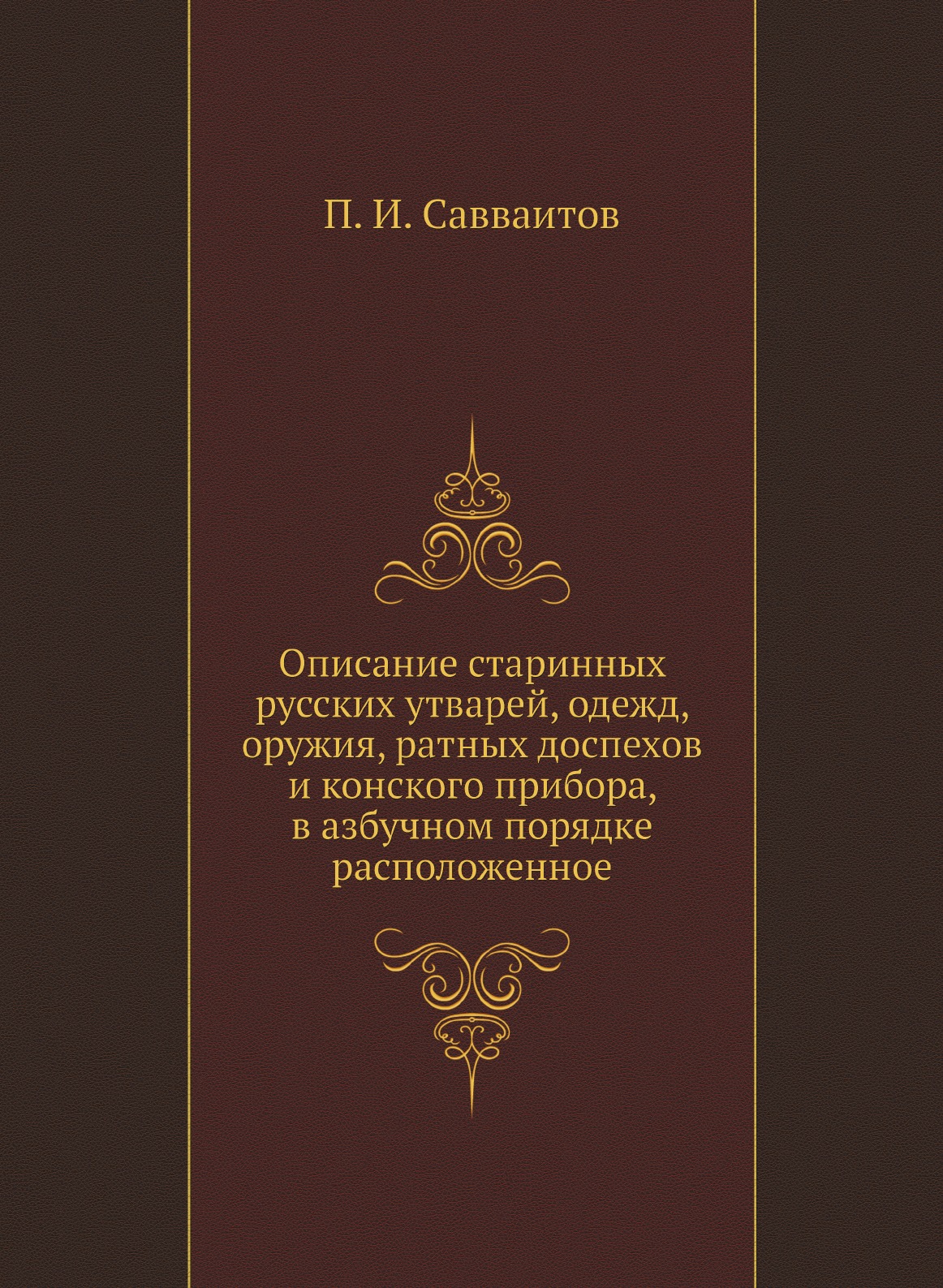 Печатная книга «Описание старинных русских утварей, одежд, оружия, ратных доспехов и конского прибора, в азбучном порядке расположенное» в мягкой обложке, язык - русский. В книге 205 страниц, она напечатана на белой офсетной бумаге плотностью 80 г/м². Формат издания — 205x280 мм. Все книги аккуратно упаковываем в прочный трёхслойный непрозрачный картонный конверт.
