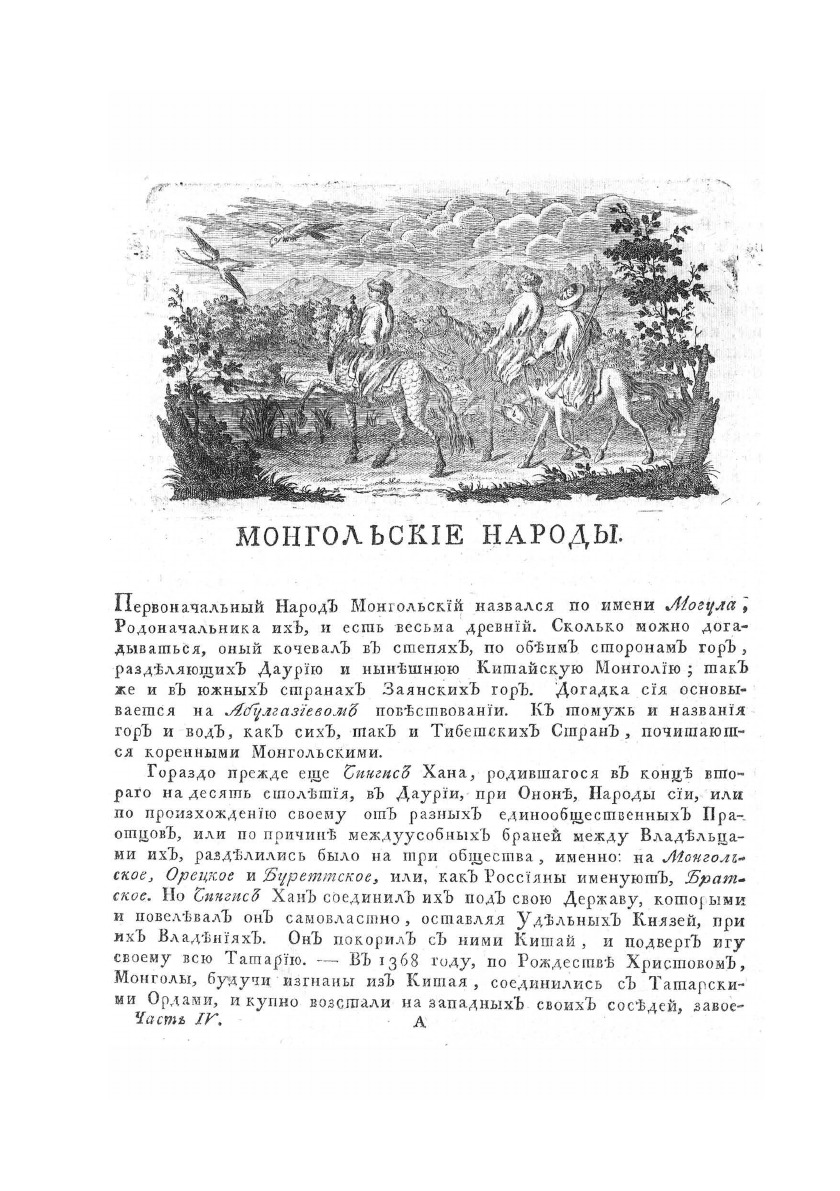 Описание всех обитающих в Российском государстве народов. Их житейских обрядов, обыкновений, одежд, жилищ, упражнений, забав, вероисповеданий и других достопамятностей. О народах монгольских, об армянах, грузинах, индийцах, немцах, поляках и о владычествующих россиянах, с описанием всех именований козаков, также история о Малой России и купно о Курландии и Литве.