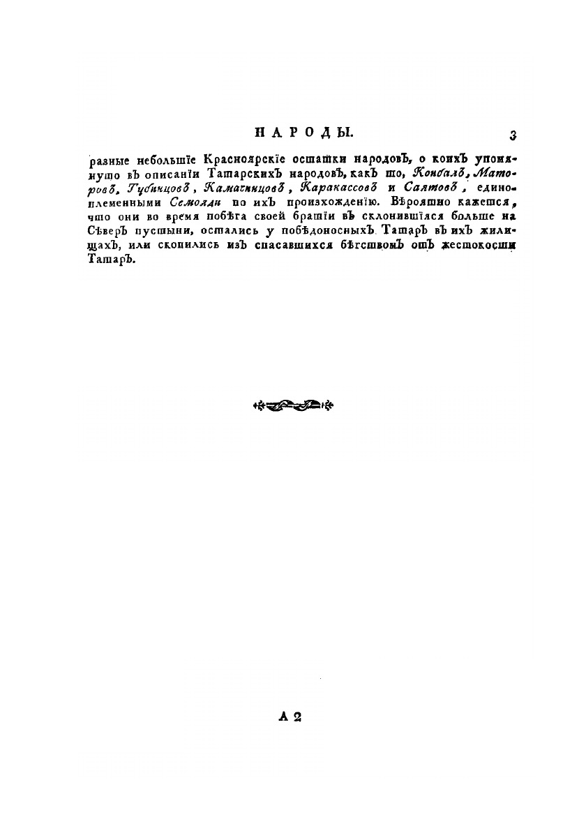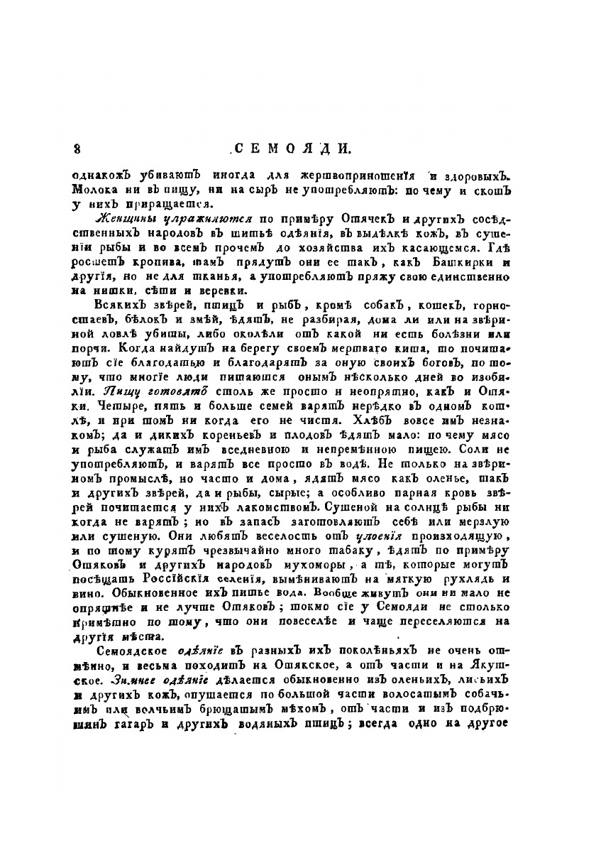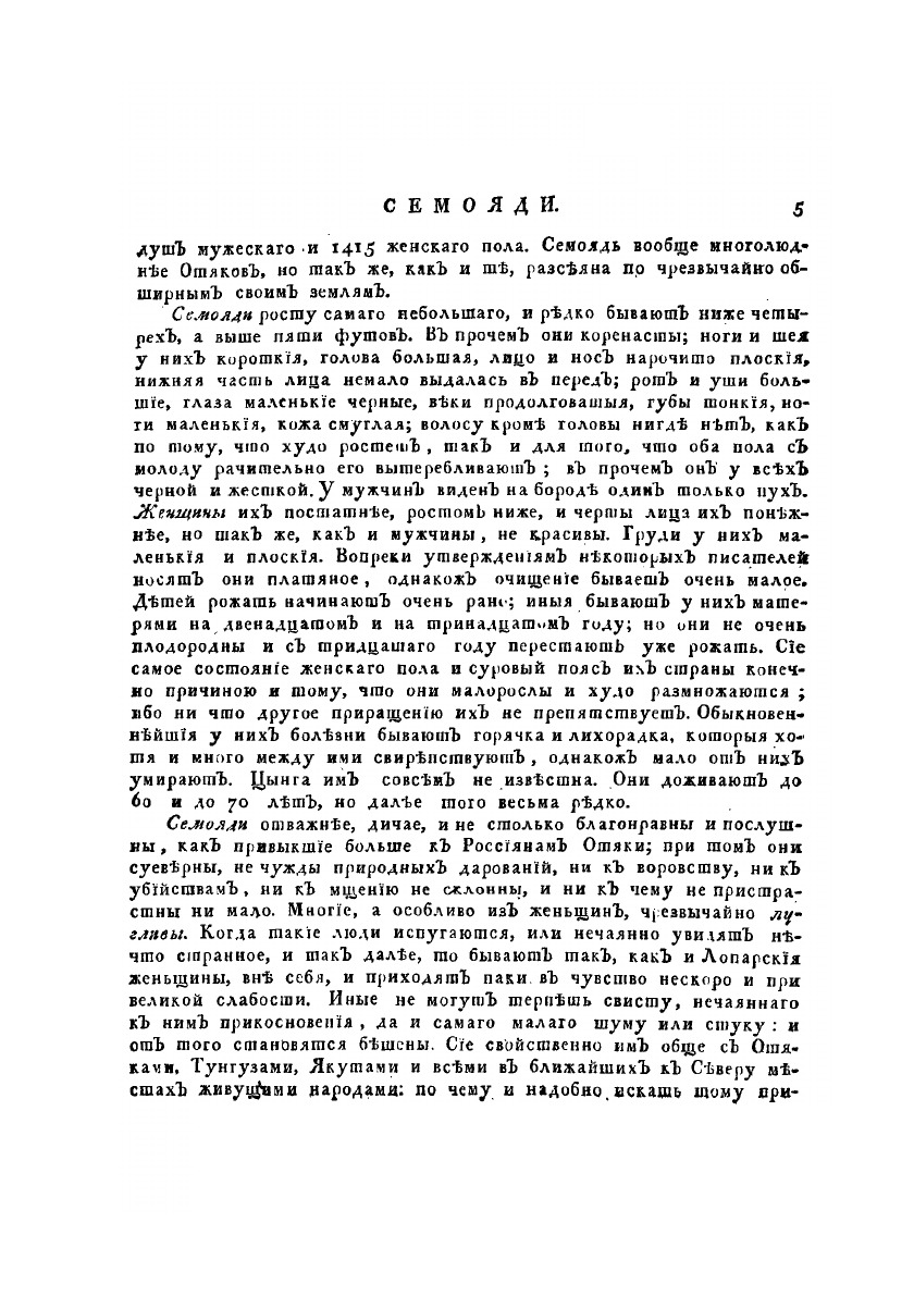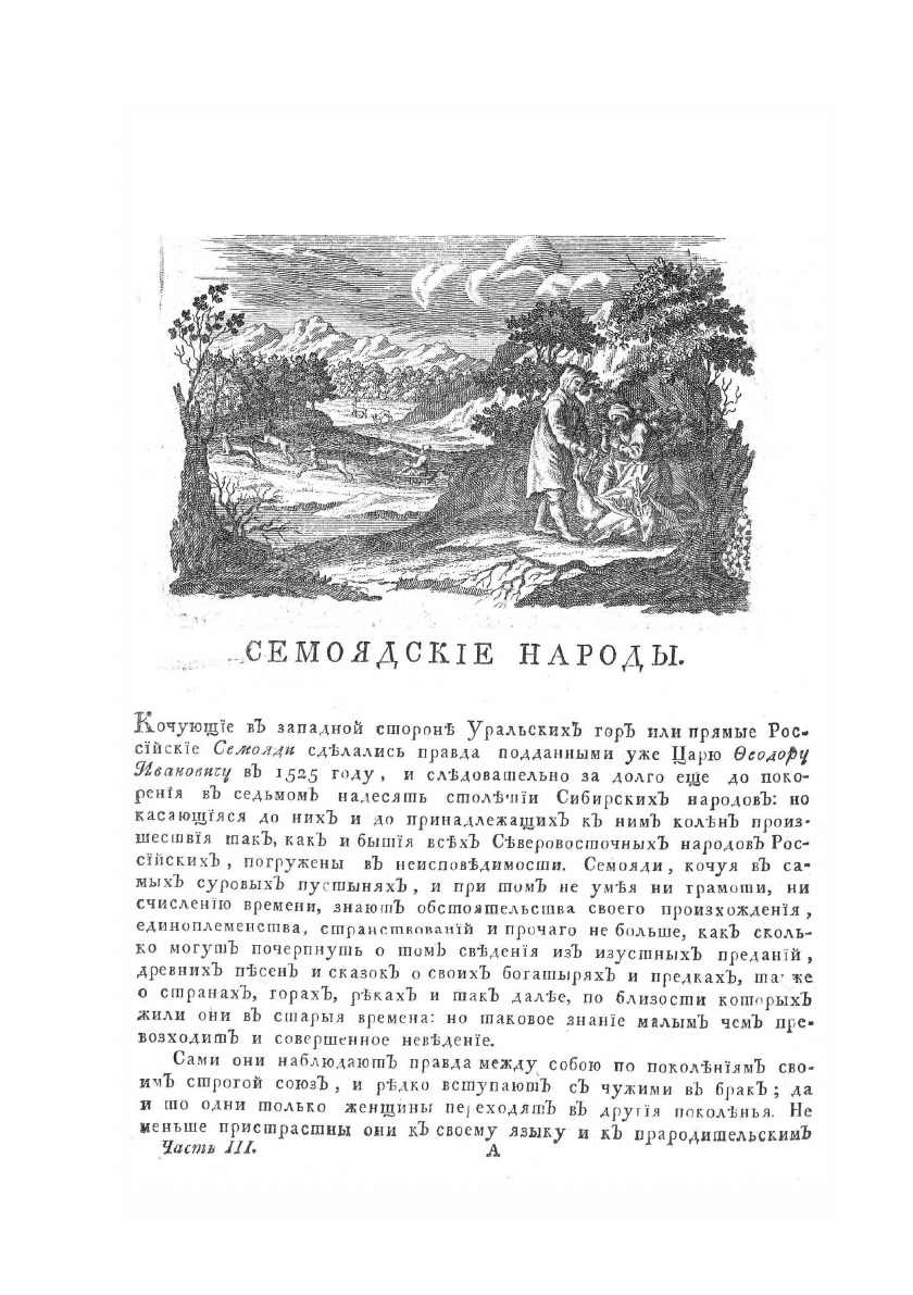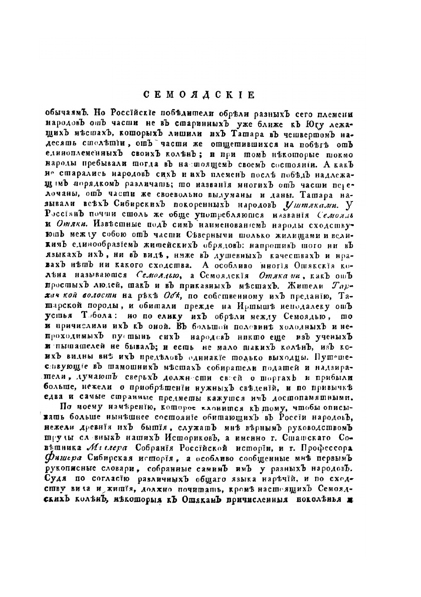 Описание всех обитающих в Российском государстве народов. Их житейских обрядов, обыкновений, одежд, жилищ, упражнений, забав, вероисповеданий и других достопамятностей. О народах семоядских, манджурских и восточных сибирских, как и о Шаманском Законе.