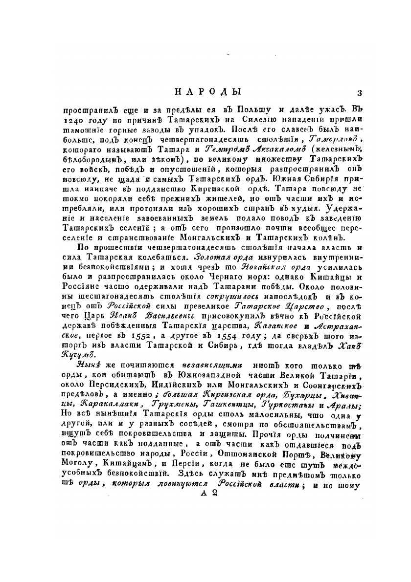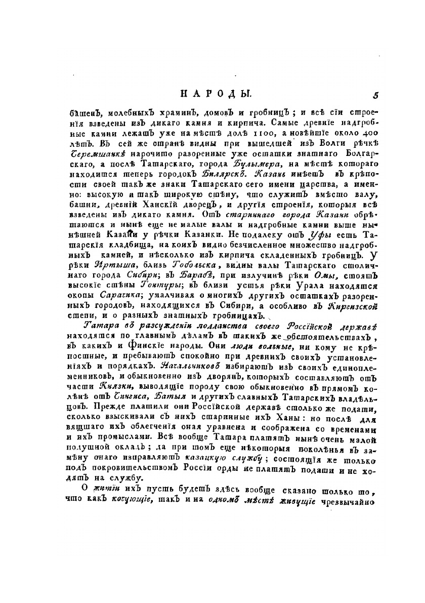 Описание всех обитающих в Российском государстве народов. Их житейских обрядов, обыкновений, одежд, жилищ, упражнений, забав, вероисповеданий и других достпамятностей. Часть вторая о народах татарского племени, и других не решенного еще происхождения северных сибирских.