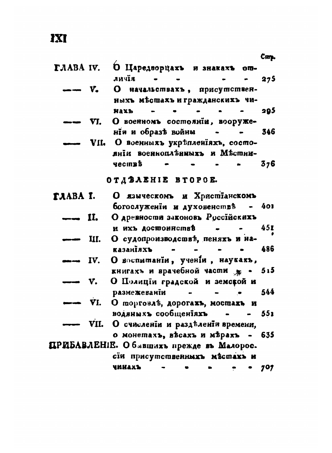 Часть 2: О обычаях Россиян в гражданском их состоянии и правительстве. Отделение 1.