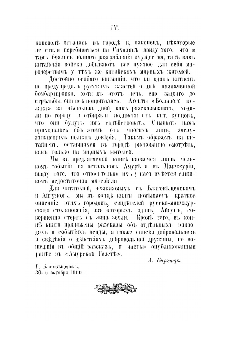С приложением списков добровольцев и сведений о вольной дружине, Айгуне, Сахаляне и Благовещенске. На память о событиях на Амуре в 1900 году. Составил А.В. Кирхнер.