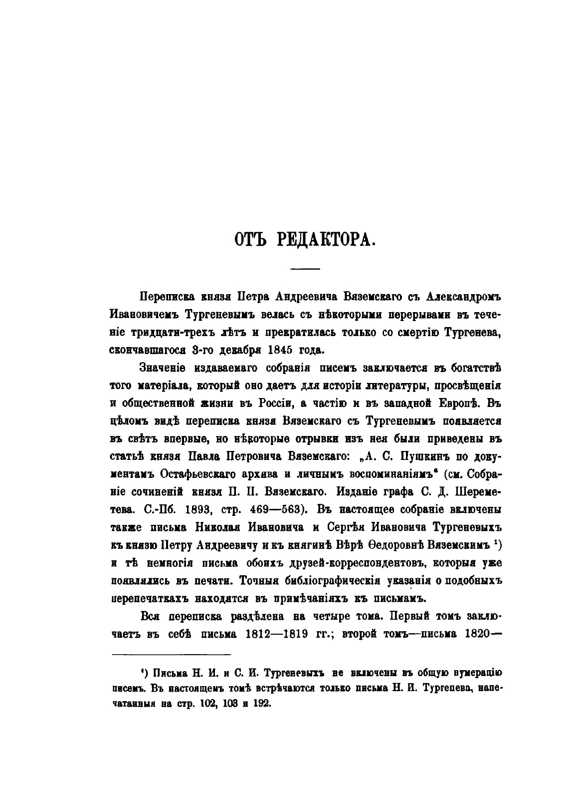 Переписка книзя П.А. Вяземского с А.И. Тургеневым, 1812-1845. Часть I: 1812-1819. С примечением. Издание графа С.Д. Шереметева. Под редакцией и с примечаниями В.И. Слитова.