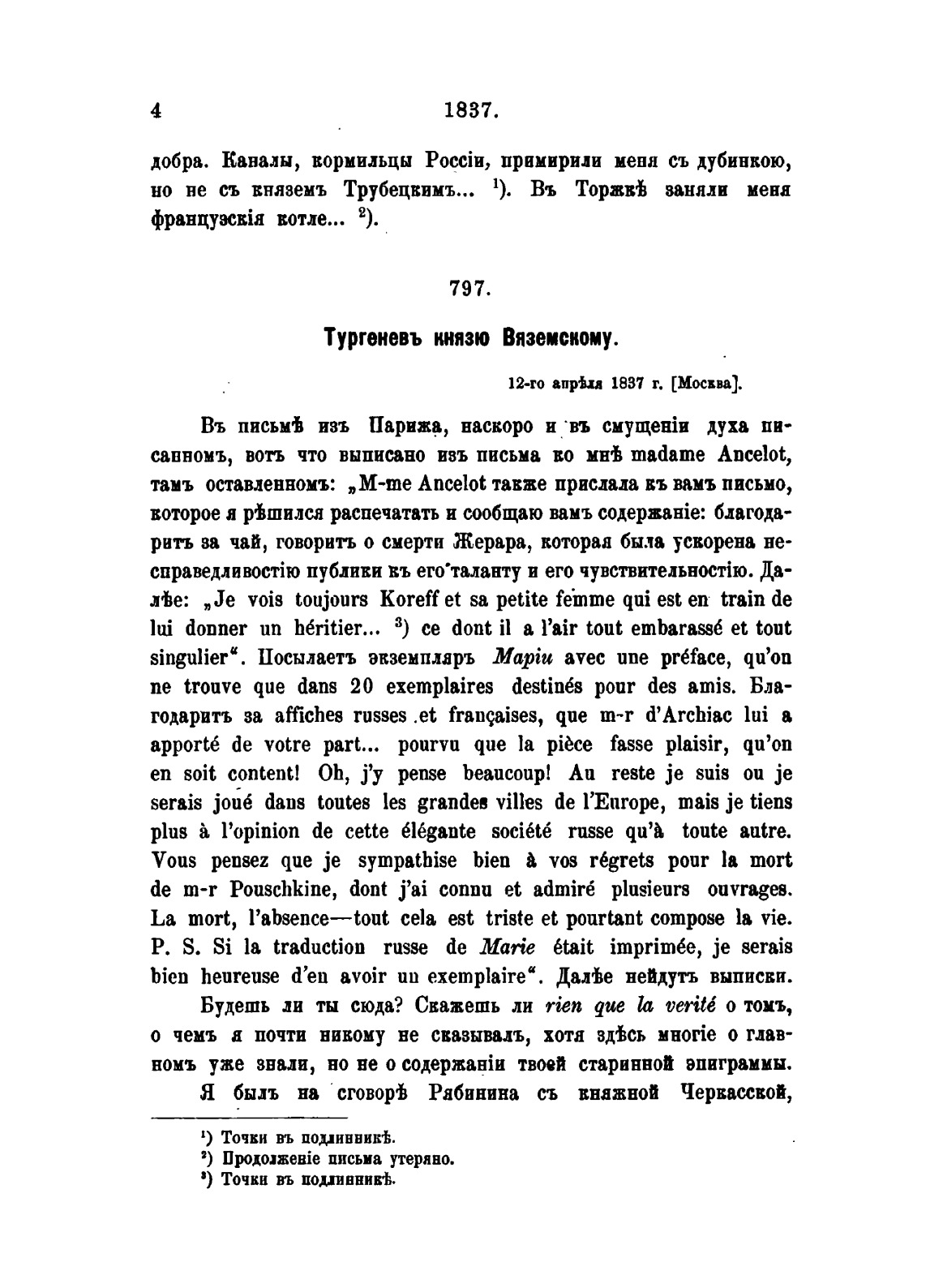 Переписка книзя П.А. Вяземского с А.И. Тургеневым, 1812-1845. Часть IV: 1837-1845. Издание графа С.Д. Шереметева. Под редакцией и с примечаниями В.И. Слитова.