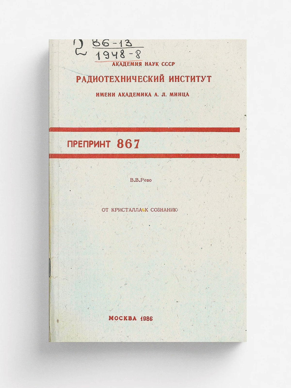 Рево, Валерий Валериевич. От кристалла к сознанию / В. В. Рево. — Москва: РИАН, 1986. — 66 с.; 23 см. — (867).