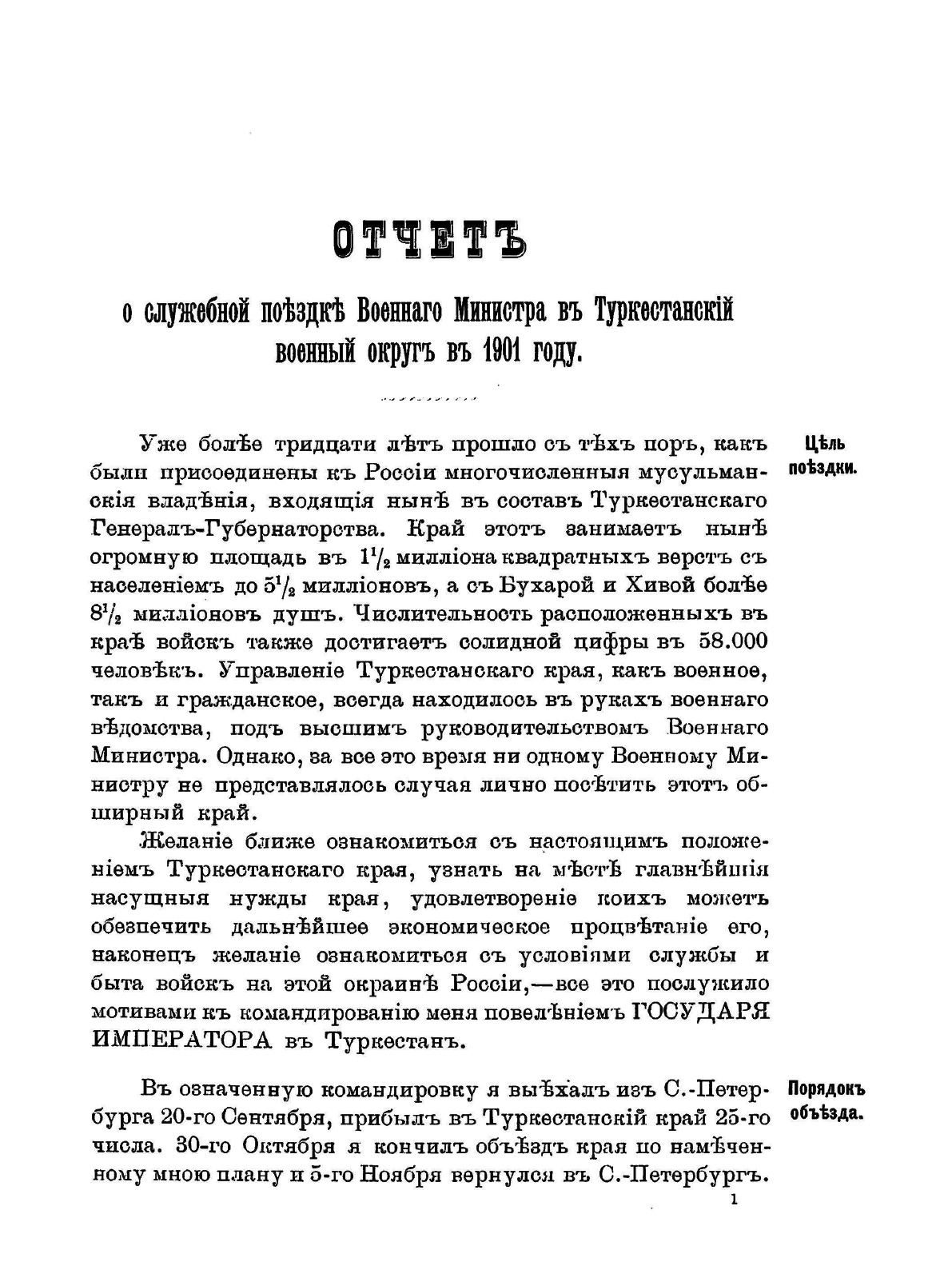 Не подлежит оглашению. Отчет военного министра Куропаткина Алексея Николаевича о поездке в Туркестанский военный округ в 1901 году.Санкт-Петербург, военная типография, 1902.