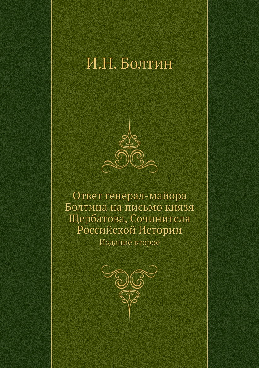 Печатная книга «Ответ генерал-майора Болтина на письмо князя Щербатова, Сочинителя Российской Истории, Издание второе» в мягкой обложке, язык - русский. В книге 160 страниц, она напечатана на белой офсетной бумаге плотностью 80 г/м². Формат издания — 148x210 мм. Все книги аккуратно упаковываем в прочный трёхслойный непрозрачный картонный конверт.