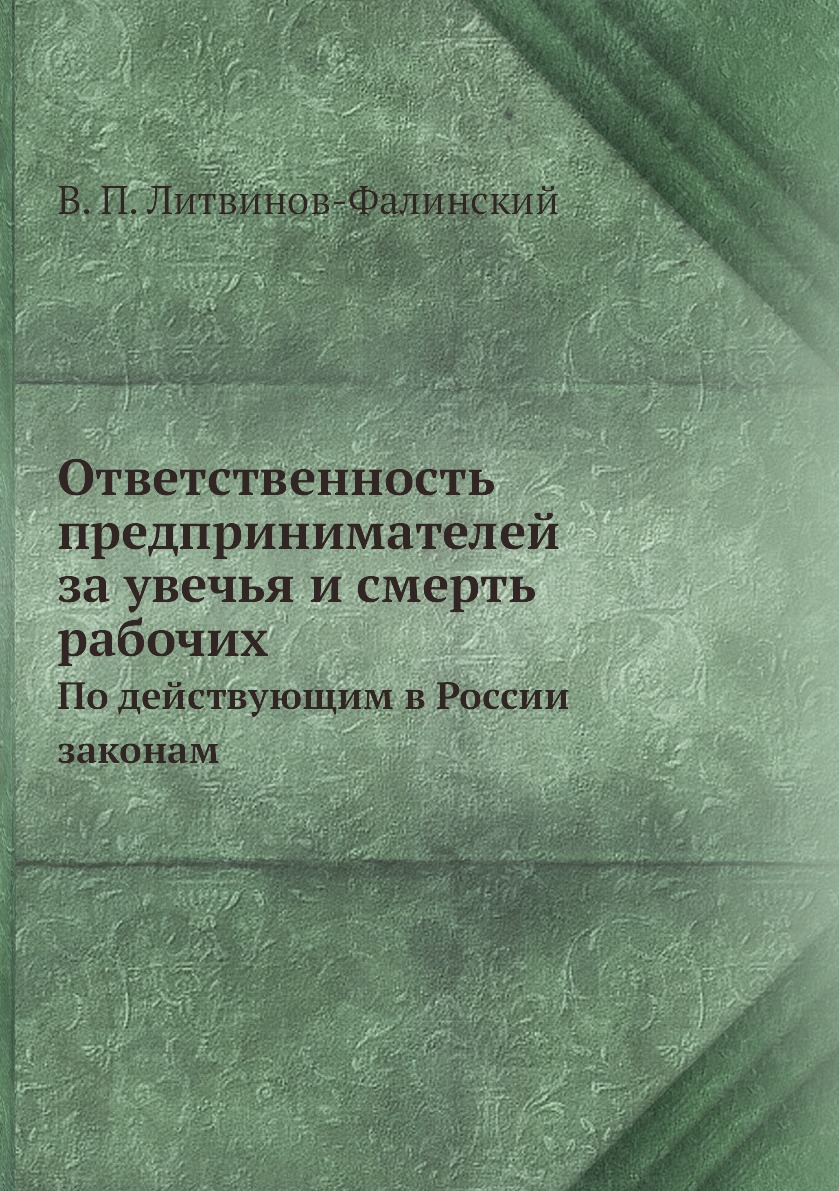 Печатная книга «Ответственность предпринимателей за увечья и смерть рабочих, По действующим в России законам» в мягкой обложке, язык - русский. В книге 406 страниц, она напечатана на белой офсетной бумаге плотностью 80 г/м². Формат издания — 148x210 мм. Все книги аккуратно упаковываем в прочный трёхслойный непрозрачный картонный конверт.