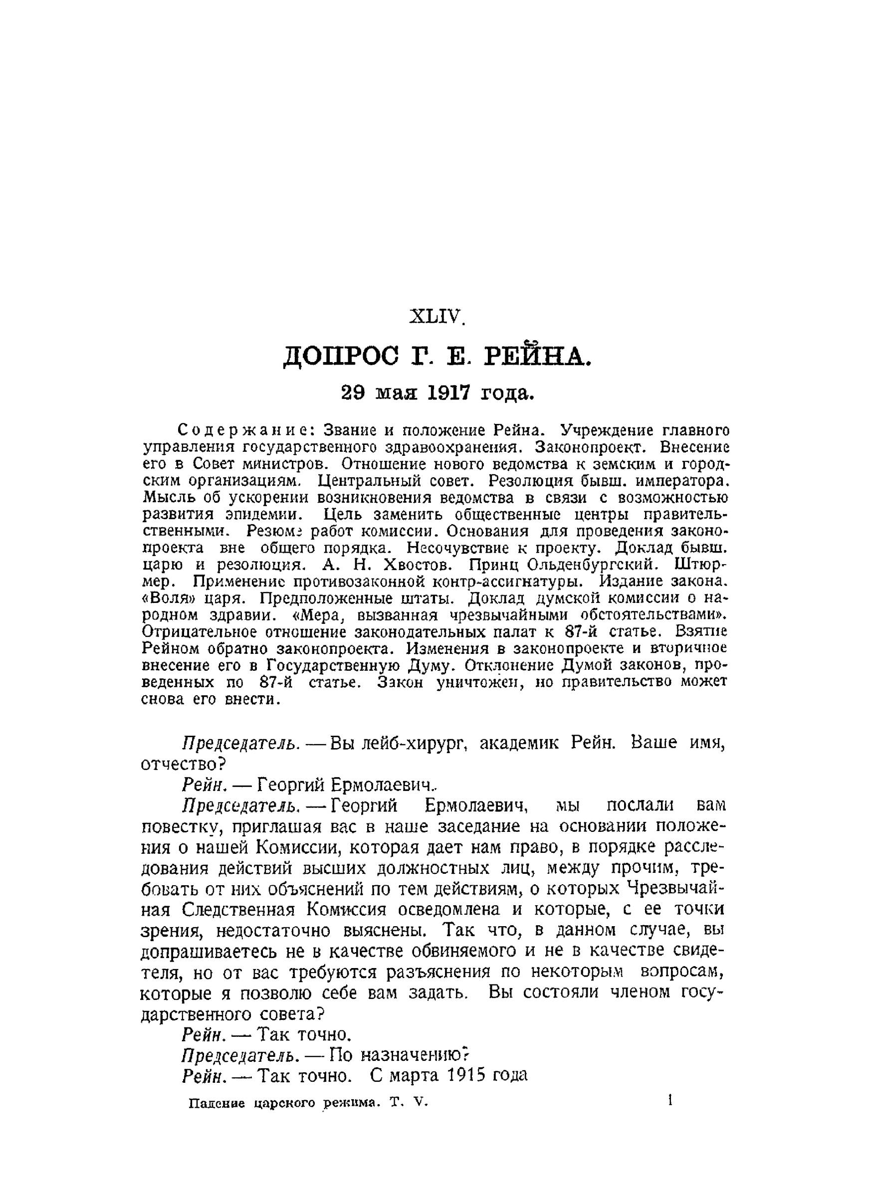 Стенографические отчеты допросов и показаний, данных в 1917 г. в Чрезвычайной Следственной Комиссии Временного Правительства.