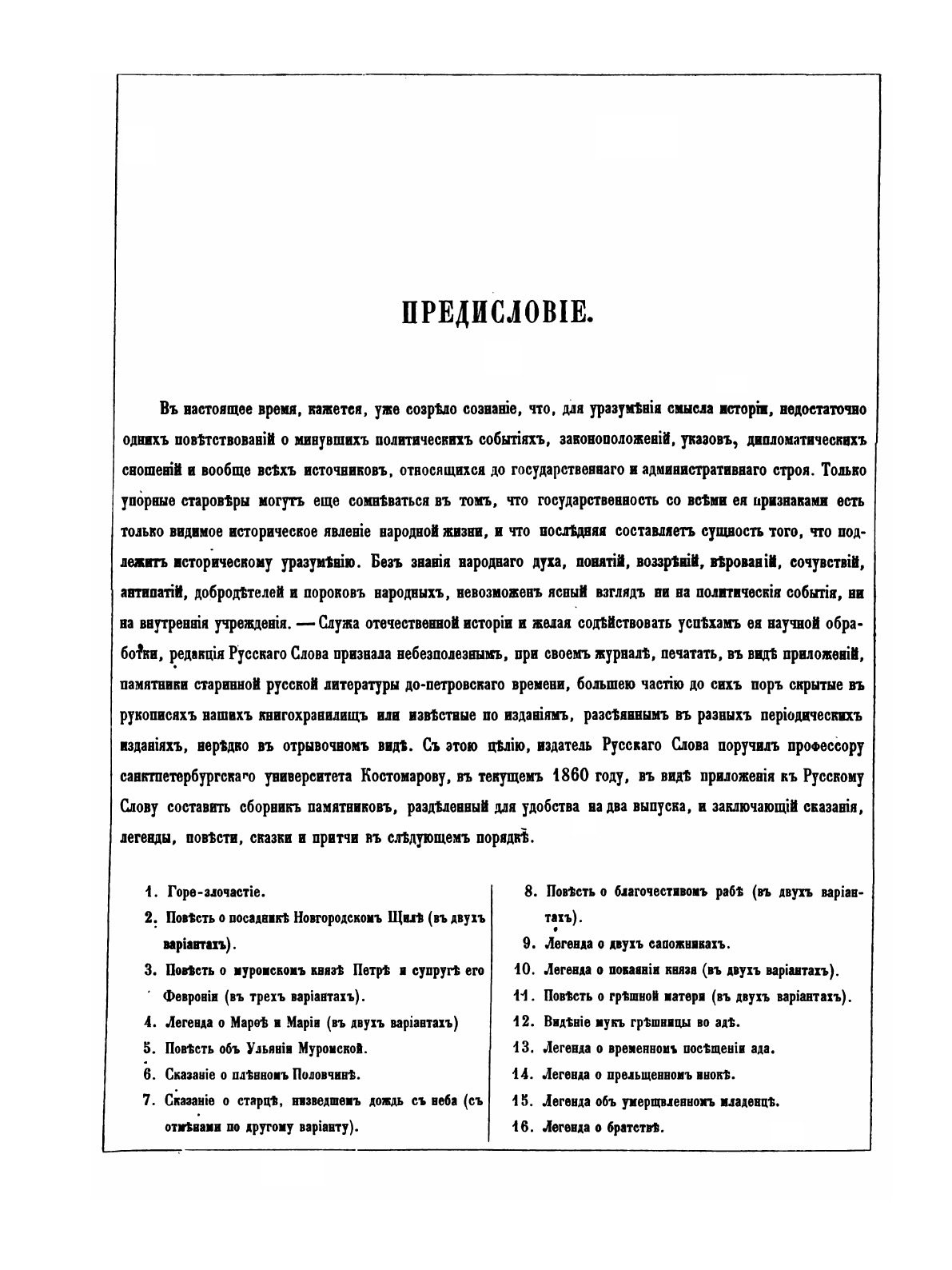 Памятники старинной русской литературы, издаваемые графом Григорием Кушелевым-Безбородко под редакцией Н.Костомарова. Выпуск 1. Сказания, легенды, повести, сказки и притчи.